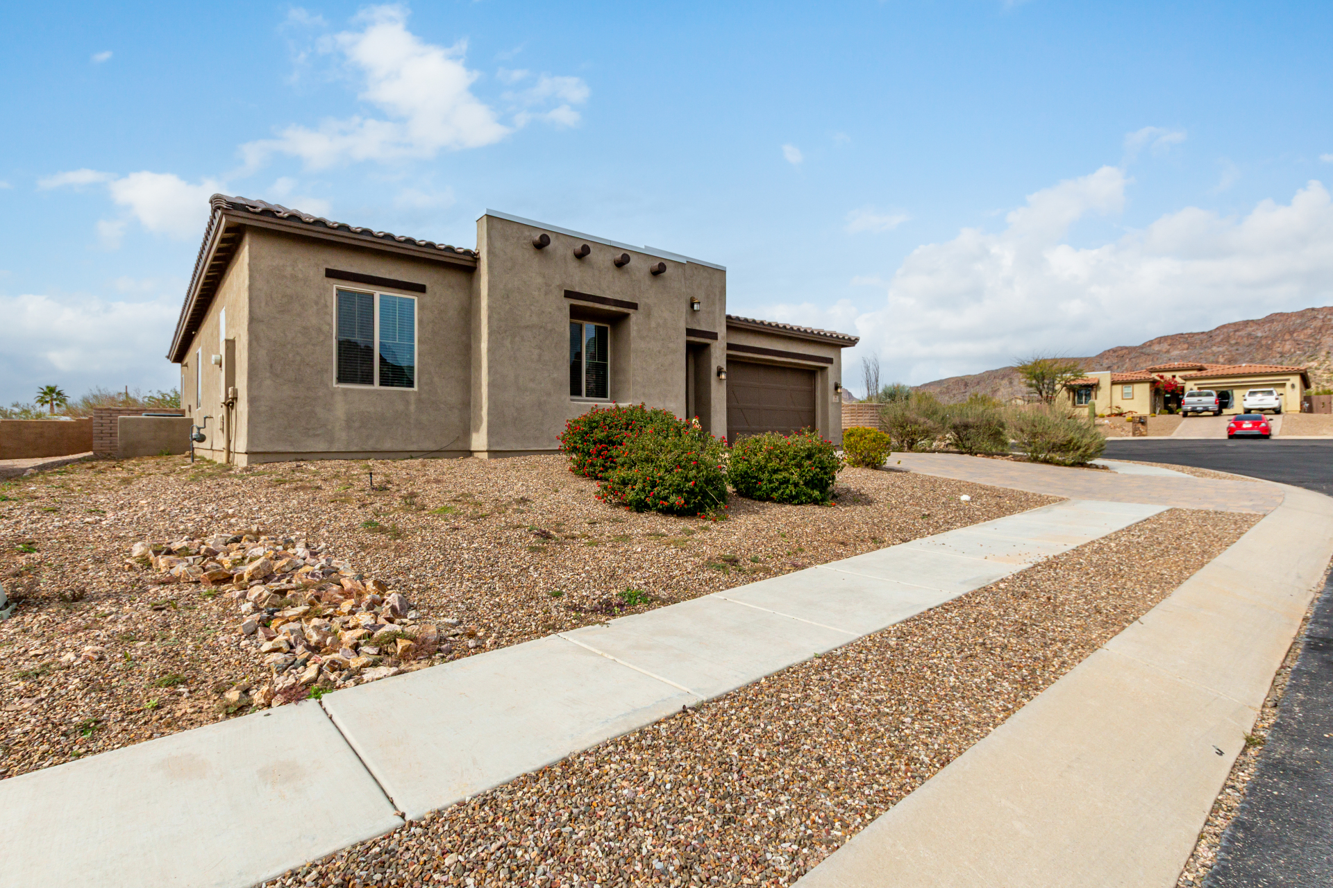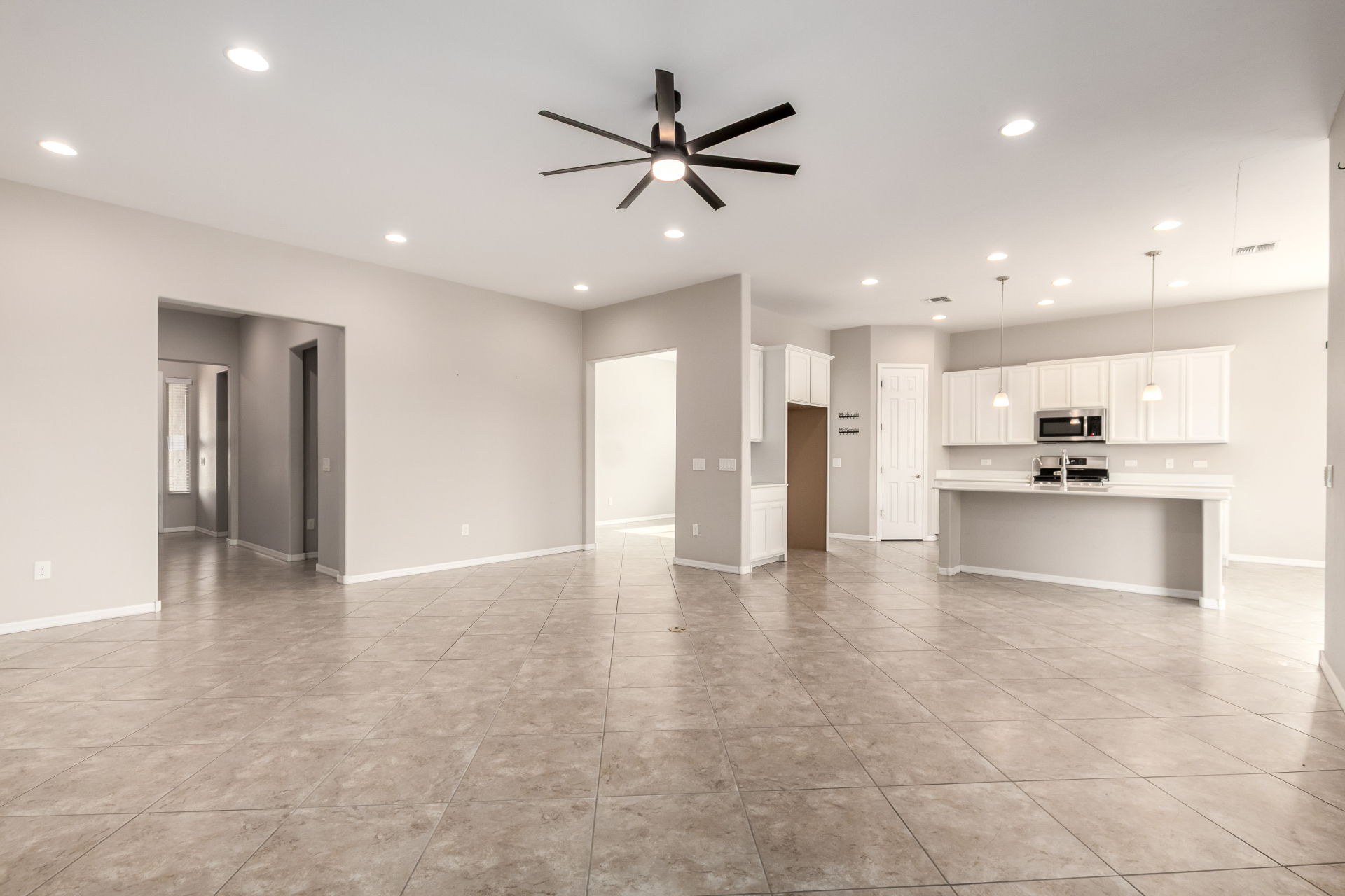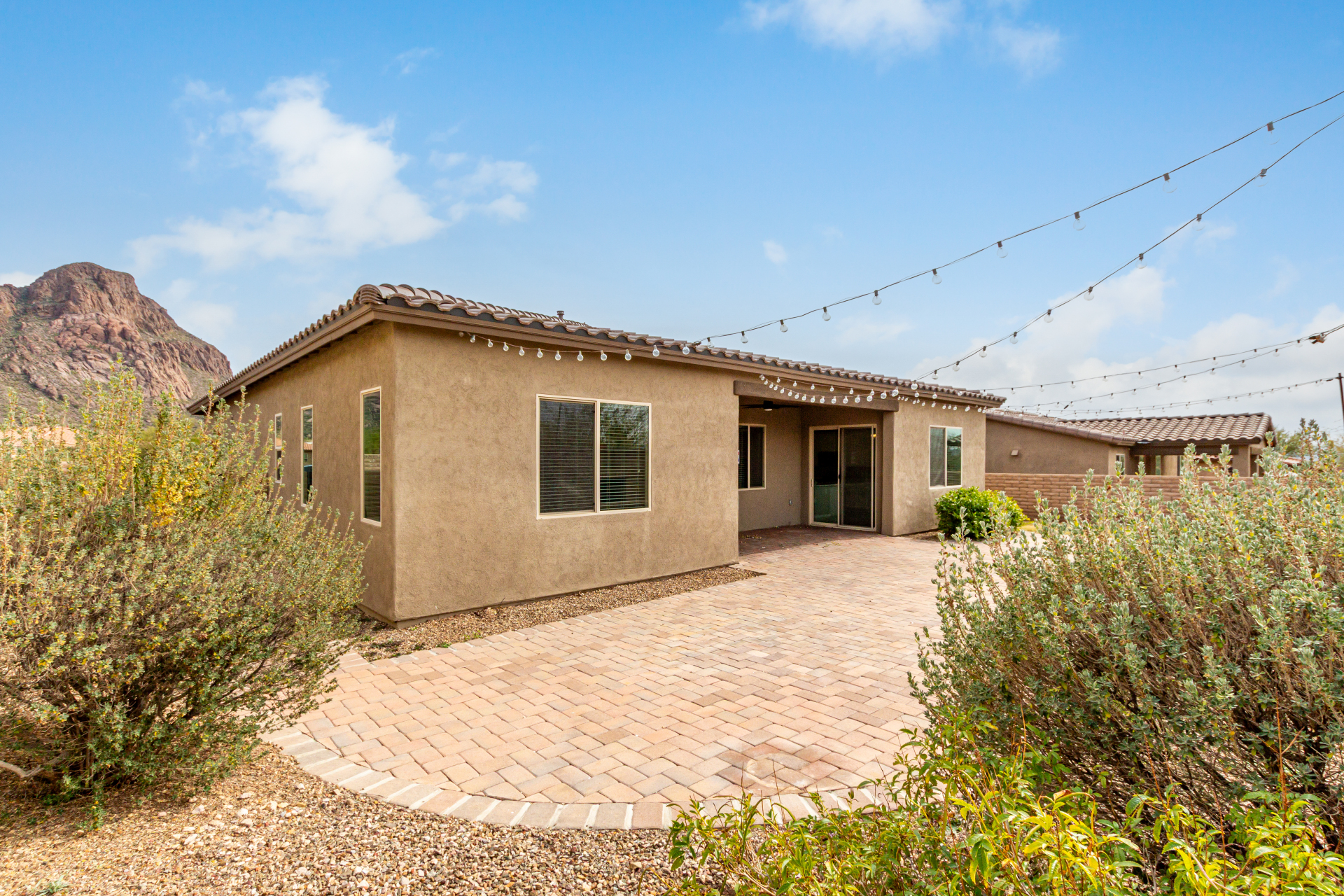 Enjoy effortless single-level living in this beautifully crafted ranch-style new home, perfectly situated just steps from the community pool. The thoughtfully designed kitchen features rich maple cabinetry, quartz countertops, recessed lighting, stainless steel appliances, and a generous walk-in pantry—ideal for both everyday living and entertaining. A charming breakfast nook opens to a spacious great room that seamlessly extends to a relaxing covered patio, perfect for indoor-outdoor enjoyment. This home offers three inviting bedrooms, including a luxurious primary suite complete with dual sinks, elegant quartz countertops, marble accents, and a stunning walk-in shower. A large walk-in closet with custom shelving adds both style and functionality. Additional highlights include soaring 10-foot ceilings, 8-foot doors throughout, and a paver-stone driveway and walkway, all combining to create a refined yet comfortable living experience.