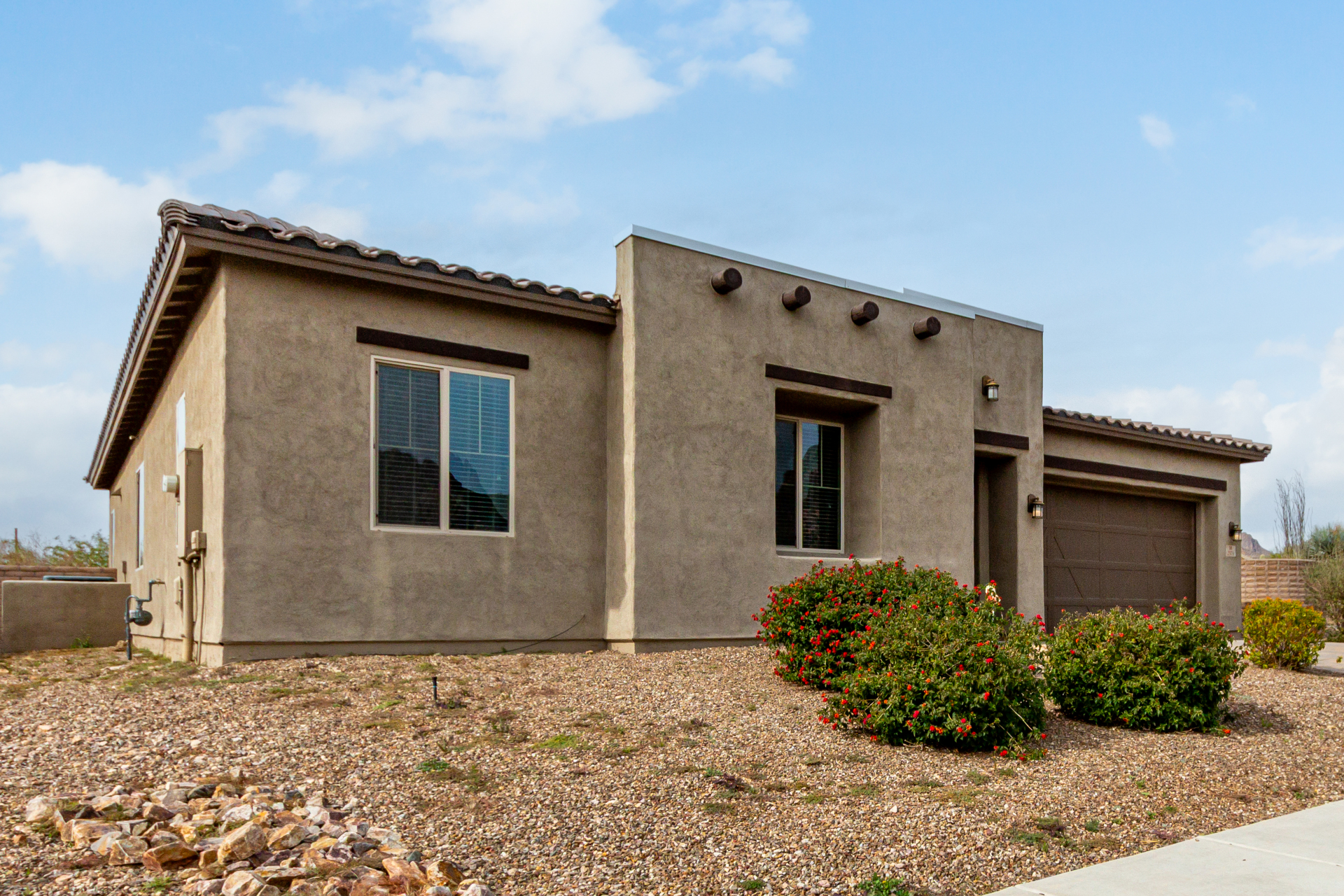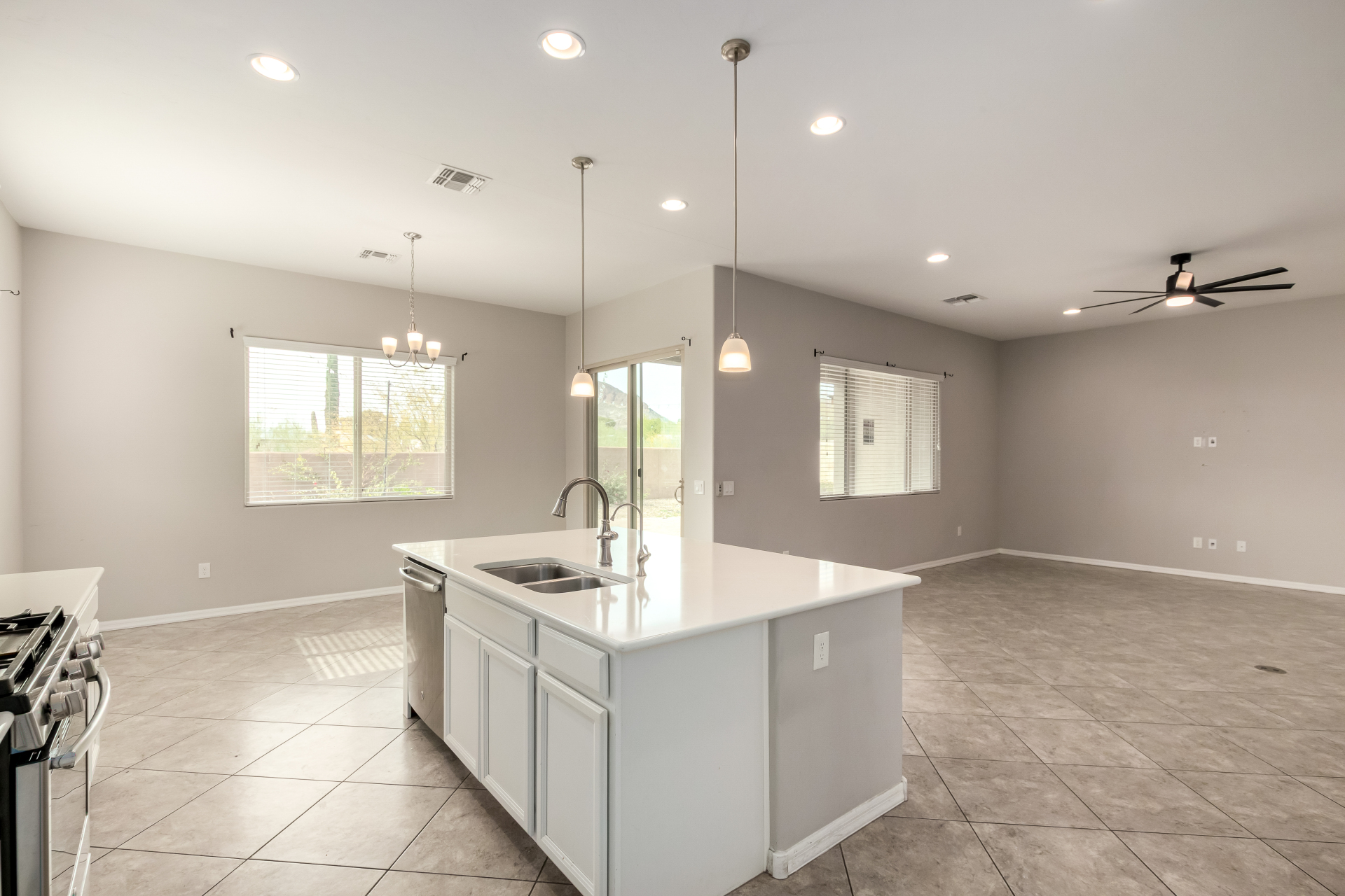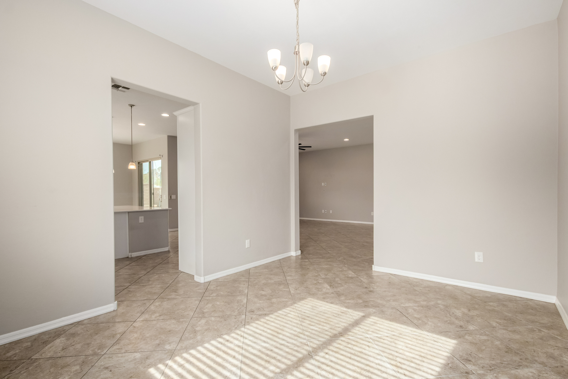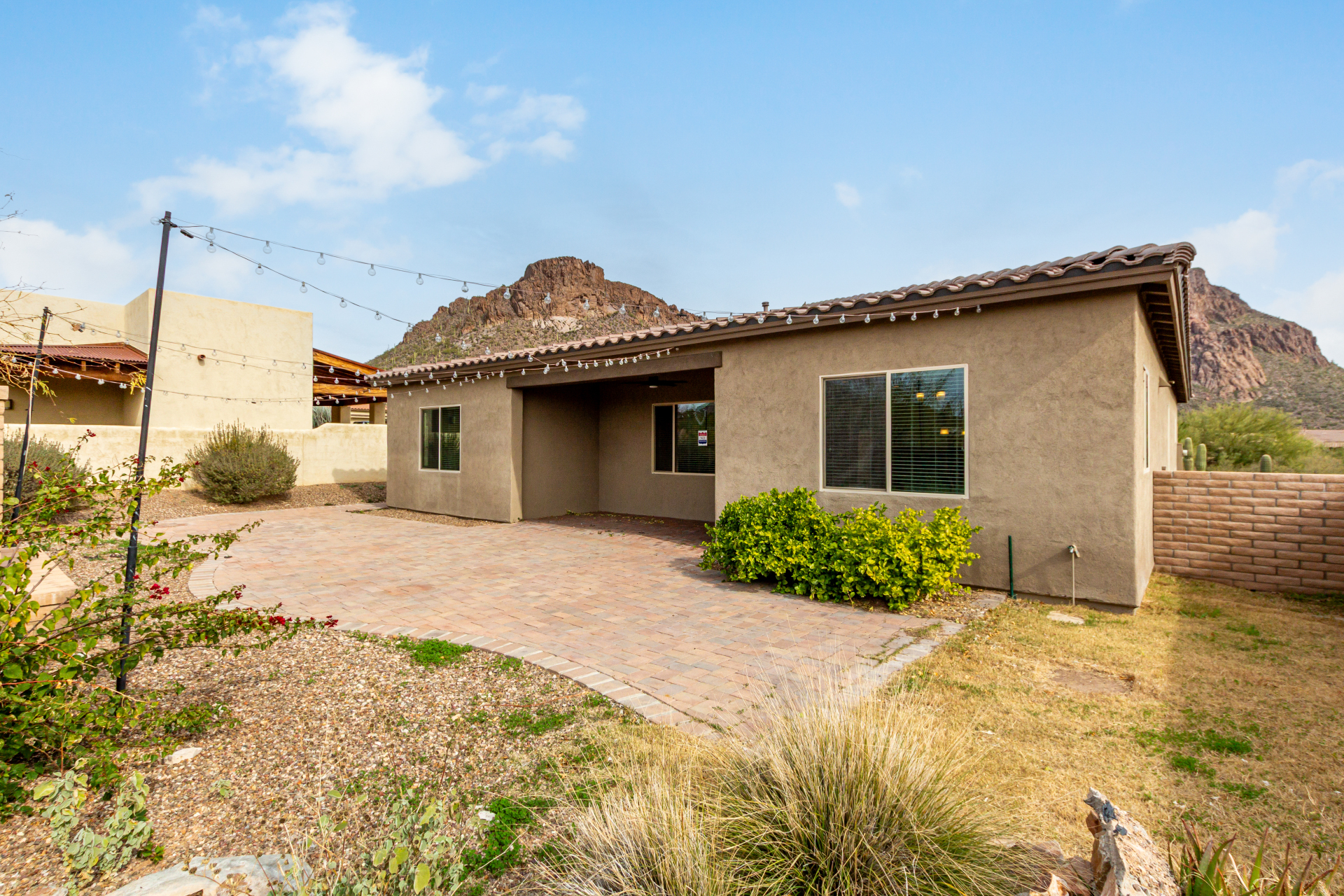 Enjoy effortless single-level living in this beautifully crafted ranch-style new home, perfectly situated just steps from the community pool. The thoughtfully designed kitchen features rich maple cabinetry, quartz countertops, recessed lighting, stainless steel appliances, and a generous walk-in pantry—ideal for both everyday living and entertaining. A charming breakfast nook opens to a spacious great room that seamlessly extends to a relaxing covered patio, perfect for indoor-outdoor enjoyment. This home offers three inviting bedrooms, including a luxurious primary suite complete with dual sinks, elegant quartz countertops, marble accents, and a stunning walk-in shower. A large walk-in closet with custom shelving adds both style and functionality. Additional highlights include soaring 10-foot ceilings, 8-foot doors throughout, and a paver-stone driveway and walkway, all combining to create a refined yet comfortable living experience.