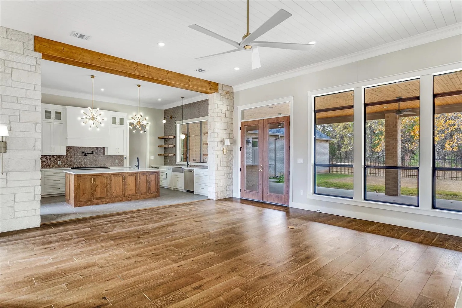 Modern elegance meets country tranquility on 6.03 acres! This stunning single-story home welcomes you with a grand foyer, 12’ ceilings, and custom lighting showcased in the office and dining room. The open-concept family room features a gas-log fireplace with a striking wood mantel, flowing seamlessly into the Chef’s Dream Kitchen, complete with stainless steel appliances, dual sinks, and heated floors for comfort and entertaining. The primary suite offers an ensuite spa-like bath with separate vanities, a soaking tub, a walk-in shower with body spray, and an expansive custom closet with built-ins throughout. Each guest bath also features heated floors for year-round comfort. Step outside to your private backyard oasis with a full outdoor kitchen, fireplace, and grill. Enjoy a serene country setting just minutes from Dinosaur World, an hour from Waco, and two hours from Dallas. Property sold "As-is". Buyer and/or buyer's agent responsible for verifying all pertinent information deemed relevant by the prospective buyer, including but not limited to square footage, acreage, utilities, taxes, zoning, permitting, condition, school zones, HOAs, etc.