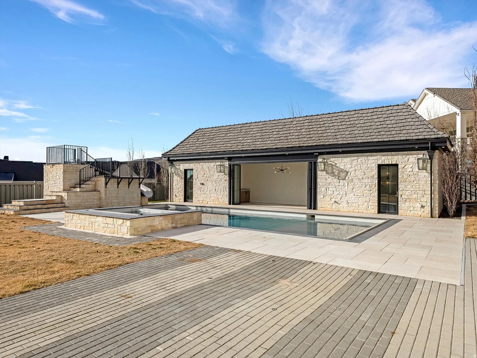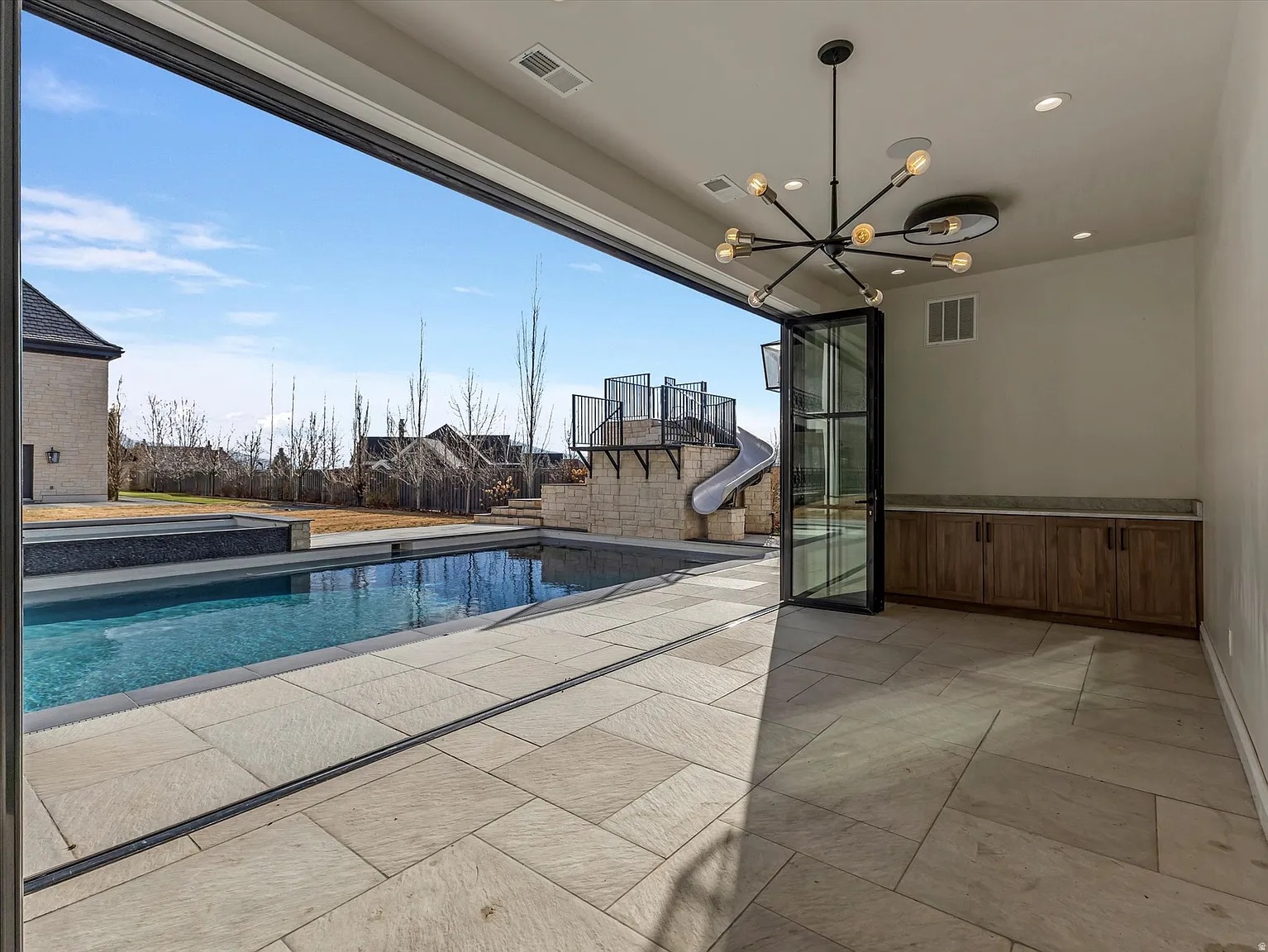 Spectacular living awaits on Alpine's East Bench, where expansive Utah Valley and sunset views from spacious entertaining areas flow into breathtaking mountain vistas from the pool and spa. This home delivers it all-an indoor basketball and pickleball court, a home theatre, a mirror-walled dance and workout space, plus a chipping and putting green. The pool's open-air casita and slide add to the fun, creating an elevated living experience for the whole family. The main floor primary suite boasts its own private deck with a hot tub and more sunset views. Extra-high, deep, heated garage spaces offer plenty of room for daily drivers, weekend cruisers, and toys, all surrounding two large gathering spaces perfect for family and friends. Property sold "As-is". Buyer and/or buyer's agent responsible for verifying all pertinent information deemed relevant by the prospective buyer, including but not limited to square footage, acreage, utilities, taxes, zoning, permitting, condition, school zones, HOAs, etc.