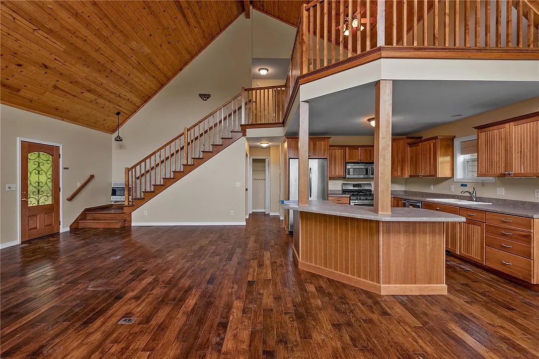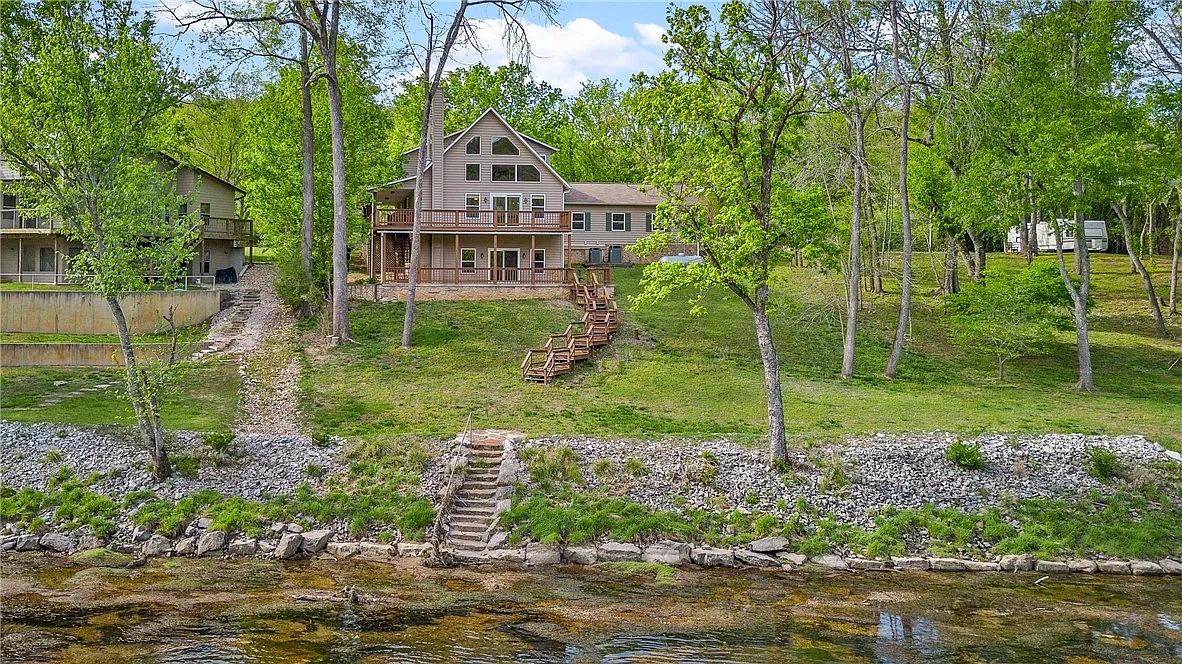 You have arrived at 104 Wheatstone Place in Cotter! Lovers of Water, Seekers of Tranquility, Admirers of Architecture, or all of the above...prepare to be absolutely blown away by this value! Located on a generously-sized residential riverfront lot that leads directly to the water's edge of the White River, this home offers: 3 bedrooms (+1 large non-conforming room), 3 full bathrooms, open living/dining area with huge windows, a full kitchen on the main level with included appliances, and a finished walk-out basement featuring another full kitchen. Property sold ''AS-IS''. Buyer and/or buyer's agent responsible for verifying all pertinent information deemed relevant by the prospective buyer including but not limited to square footage, acreage, utilities, taxes, permitting, condition, school zones, HOA's, etc. Buyers must first submit a Letter of Intent (LOI in documents section). Cash buyers must submit a Proof of Funds letter and Conventional buyers must submit a Pre-Approval letter in order to be considered.