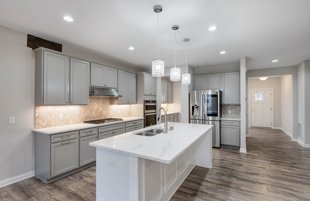 This home features upgrades throughout. Open concept plan w/ large living room open to gourmet kitchen/informal dining and a cozy gas fireplace. Kitchen features granite counters & upgraded SS appliances w/touch screen refrigerator. The maintenance free deck is off the informal dining room. Flex space offers option for home office or formal dining. The first floor also offers a main level bedroom. The butler station is ideal for entertaining, a bar, coffee station or workstation. Large pantry is adjacent to the butler area. The built-in desk near the mudroom is ideal as a control center or home office. The upper-level features 4 BR, three w/ custom closets (California Closets), loft and a laundry room.. Addition features include 3 car garage, concrete driveway, LVP flooring, upper-level laundry w/cabinets built in and upgraded lighting. The Owner’s Suite has 2 separate closets, spa like bath w/ tub and shower. Also, a finished basement w/recreation room, full bathroom and a bedroom.