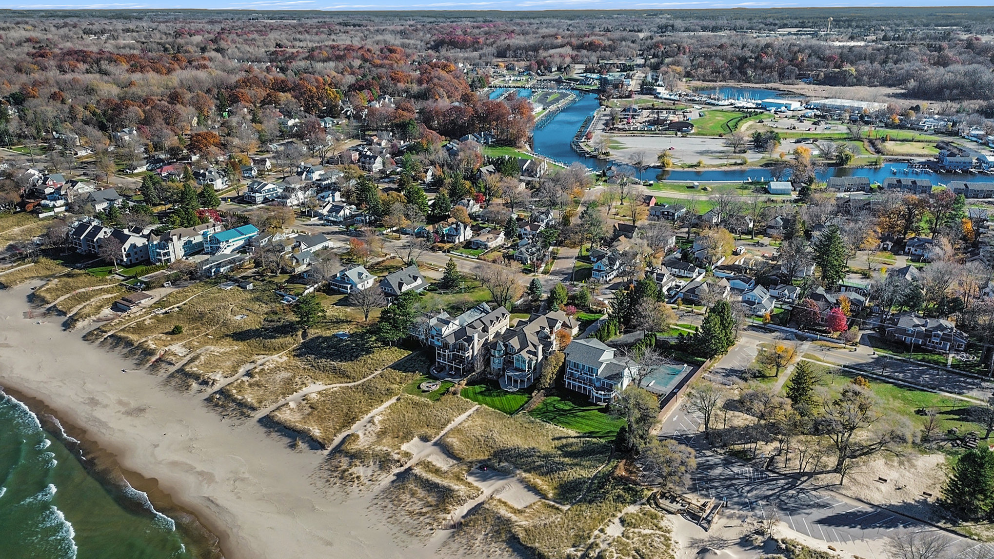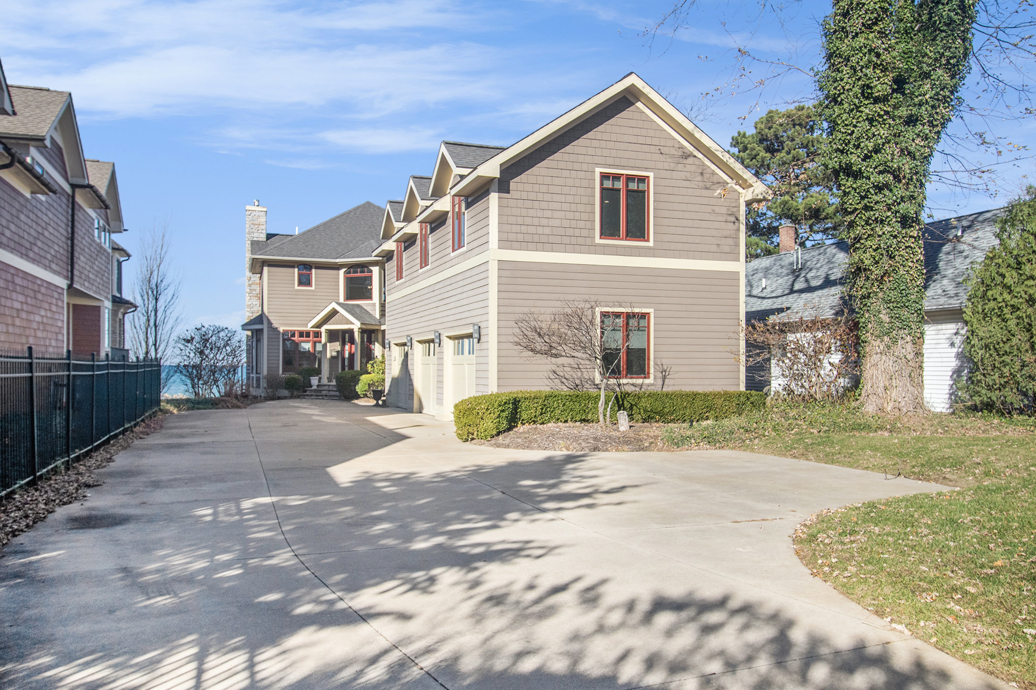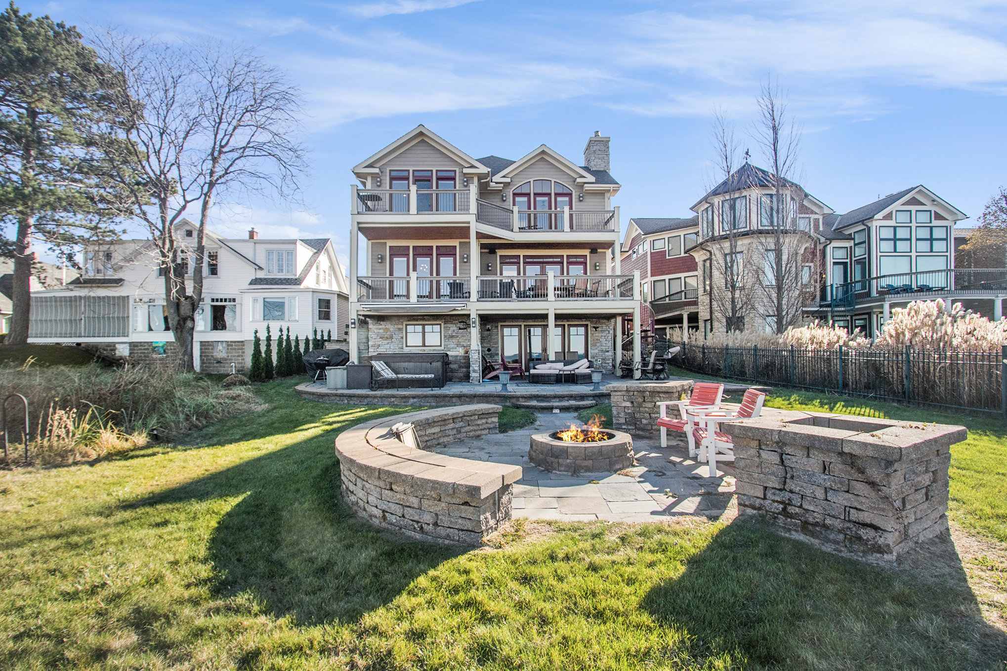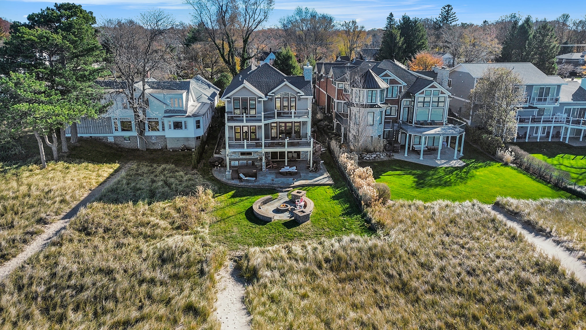 Discover timeless lakefront living in this traditional-style Lake Michigan retreat, perfectly set on a breathtaking stretch of shoreline with direct beach access. Designed for both comfort and sophistication, this spacious home offers sun-filled interiors, generous gathering spaces, and panoramic water views throughout. The main floor welcomes you with abundant natural light, a well-appointed kitchen with ample workspace, a cozy den, and both a full and half bathroom for added convenience. Multiple access points lead to two inviting decks, a large patio, and an impressive outdoor firepit, creating seamless indoor-outdoor living and the ideal backdrop for lakefront entertaining. Upstairs, the top floor features three comfortable bedrooms, four bathrooms, and a stunning bonus room. The partially finished walkout basement adds even more versatility with an additional bedroom, bathroom, and easy access to the outdoors, ideal for guests or extended stays. Several fireplaces warm the home with classic charm, while the three-car garage and extended driveway offer exceptional parking and storage. With unmatched lake frontage, generous living space, a layout designed for relaxation and connection, and located within walking distance of South Haven's shops and restaurants, this property embodies the best of lakeside living on Lake Michigan. Property sold "As-is".Buyer and/or buyer's agent responsible for verifying all pertinent information deemed relevant by the prospective buyer, including but not limited to square footage, acreage, utilities, taxes, zoning, permitting, condition, school zones, HOAs, etc.