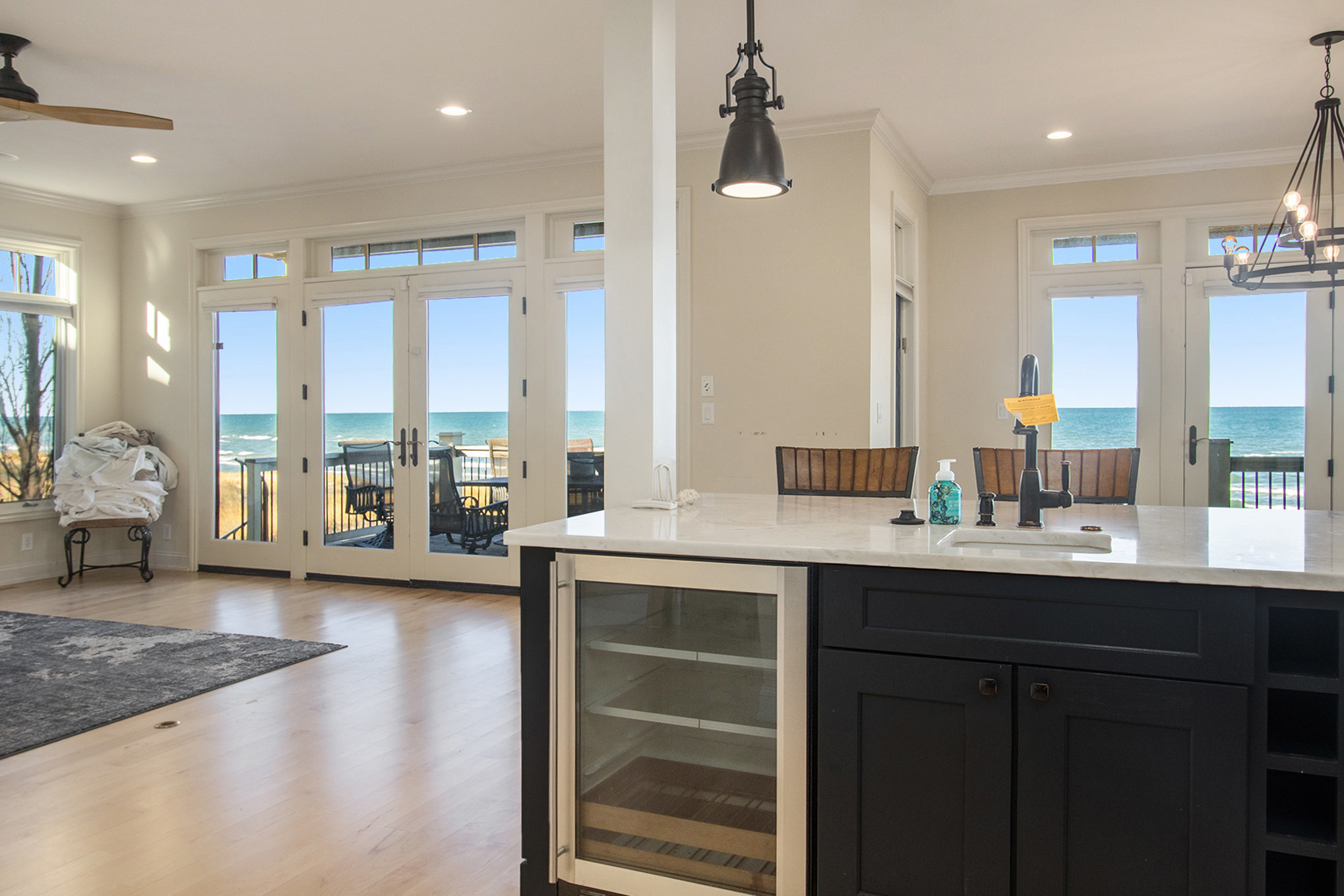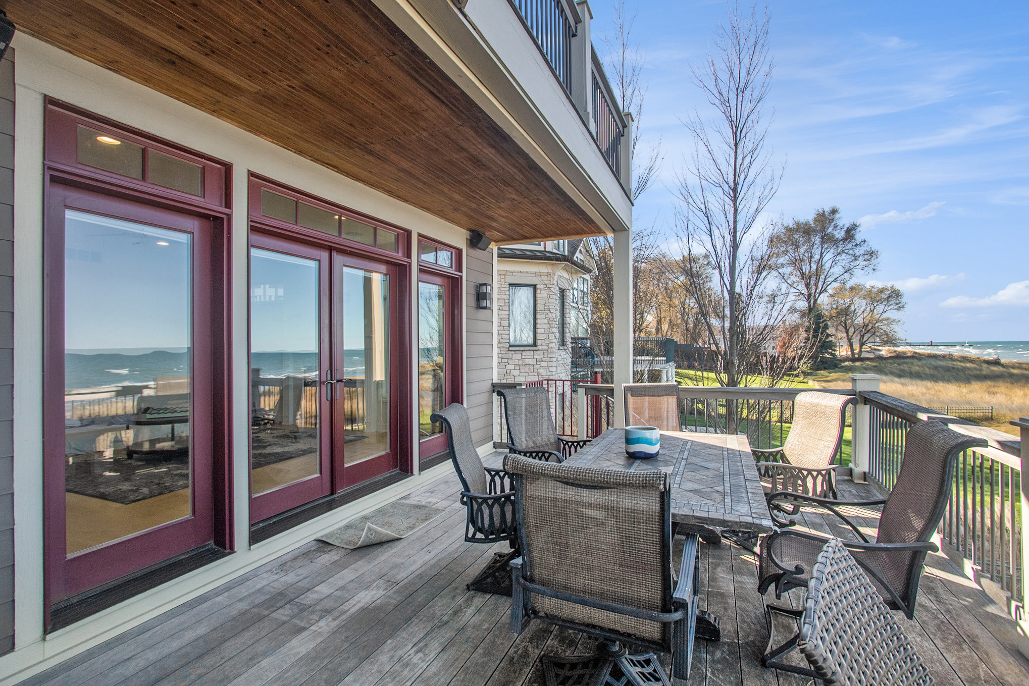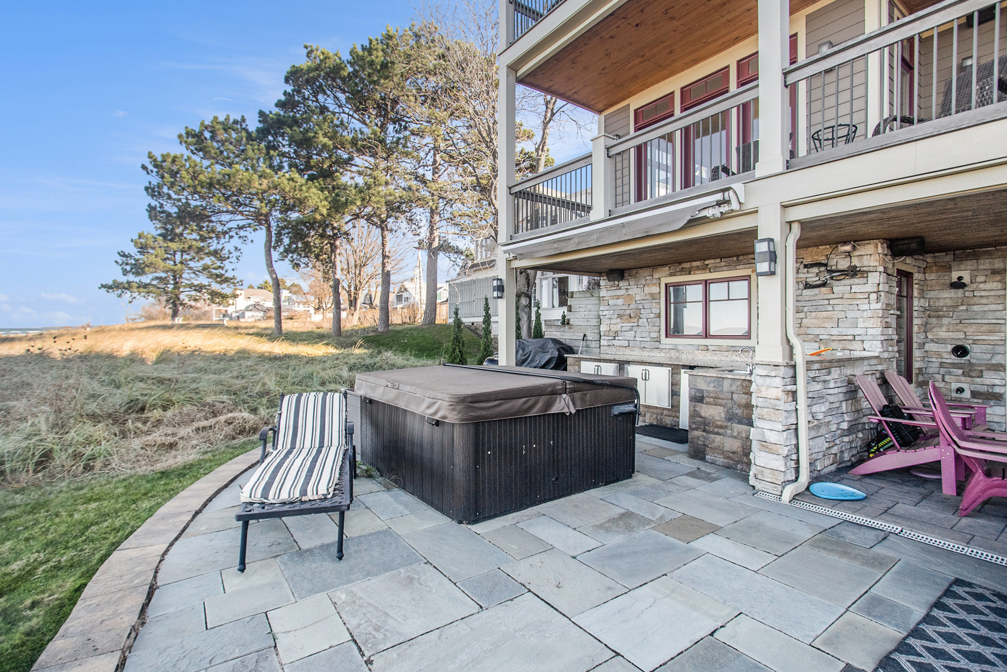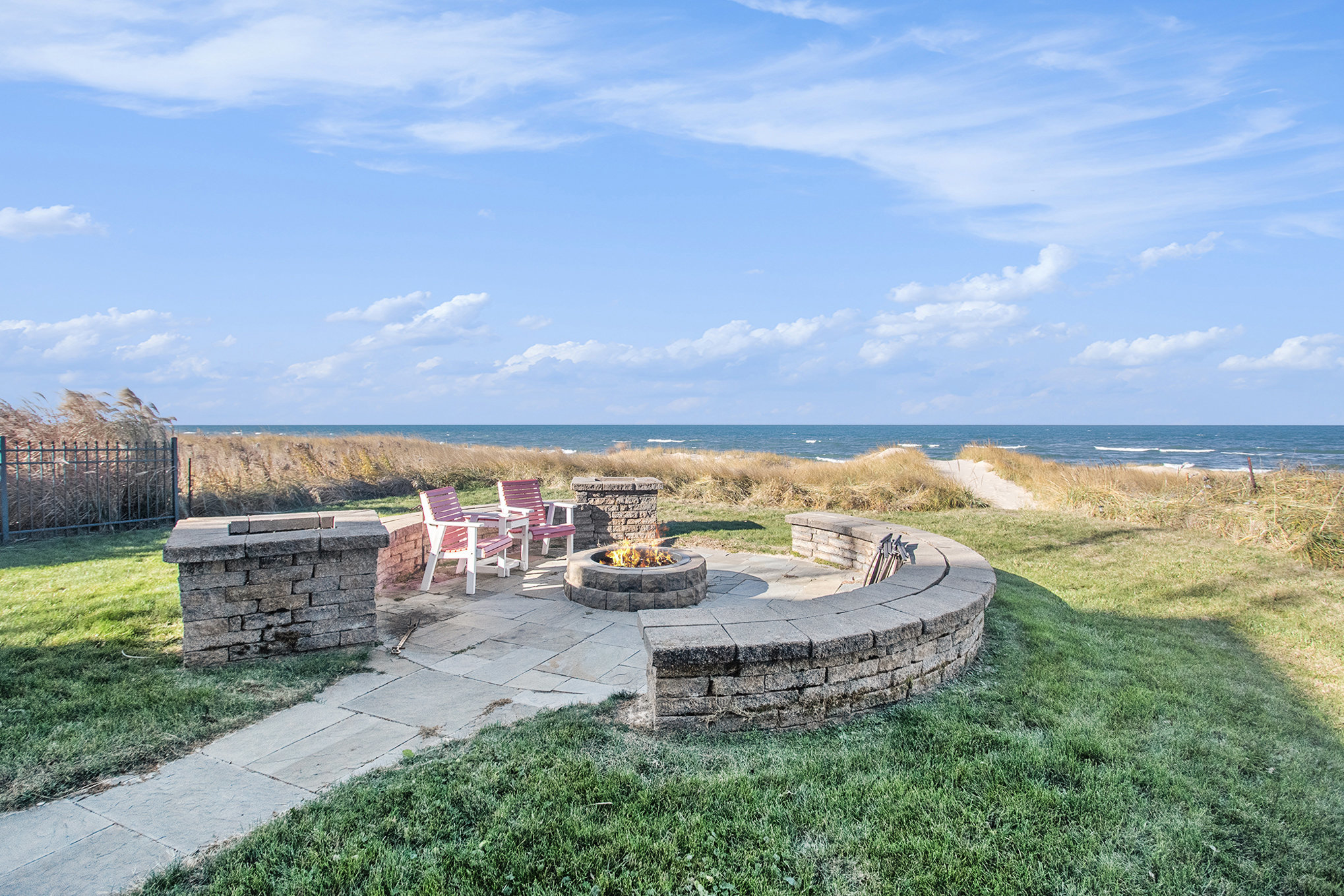 Discover timeless lakefront living in this traditional-style Lake Michigan retreat, perfectly set on a breathtaking stretch of shoreline with direct beach access. Designed for both comfort and sophistication, this spacious home offers sun-filled interiors, generous gathering spaces, and panoramic water views throughout. The main floor welcomes you with abundant natural light, a well-appointed kitchen with ample workspace, a cozy den, and both a full and half bathroom for added convenience. Multiple access points lead to two inviting decks, a large patio, and an impressive outdoor firepit, creating seamless indoor-outdoor living and the ideal backdrop for lakefront entertaining. Upstairs, the top floor features three comfortable bedrooms, four bathrooms, and a stunning bonus room. The partially finished walkout basement adds even more versatility with an additional bedroom, bathroom, and easy access to the outdoors, ideal for guests or extended stays. Several fireplaces warm the home with classic charm, while the three-car garage and extended driveway offer exceptional parking and storage. With unmatched lake frontage, generous living space, a layout designed for relaxation and connection, and located within walking distance of South Haven's shops and restaurants, this property embodies the best of lakeside living on Lake Michigan. Property sold "As-is".Buyer and/or buyer's agent responsible for verifying all pertinent information deemed relevant by the prospective buyer, including but not limited to square footage, acreage, utilities, taxes, zoning, permitting, condition, school zones, HOAs, etc.