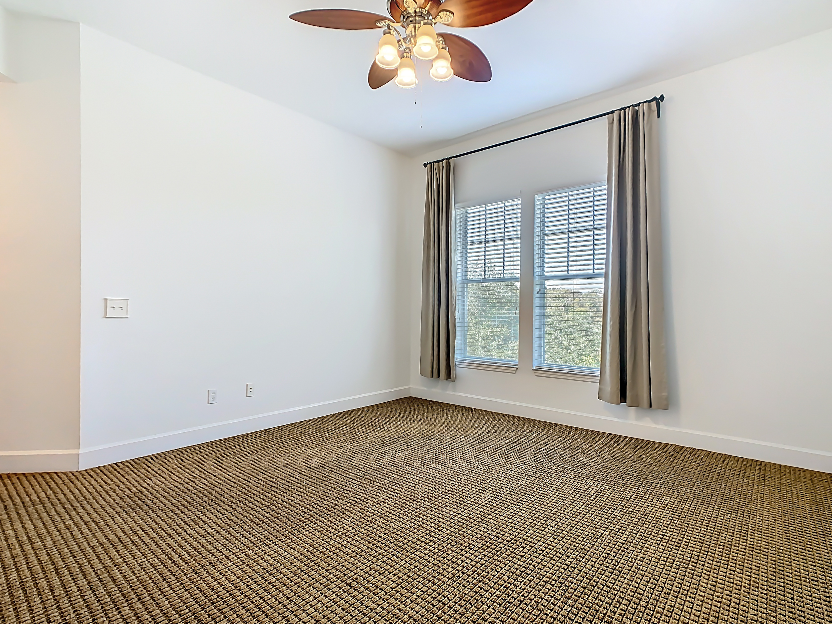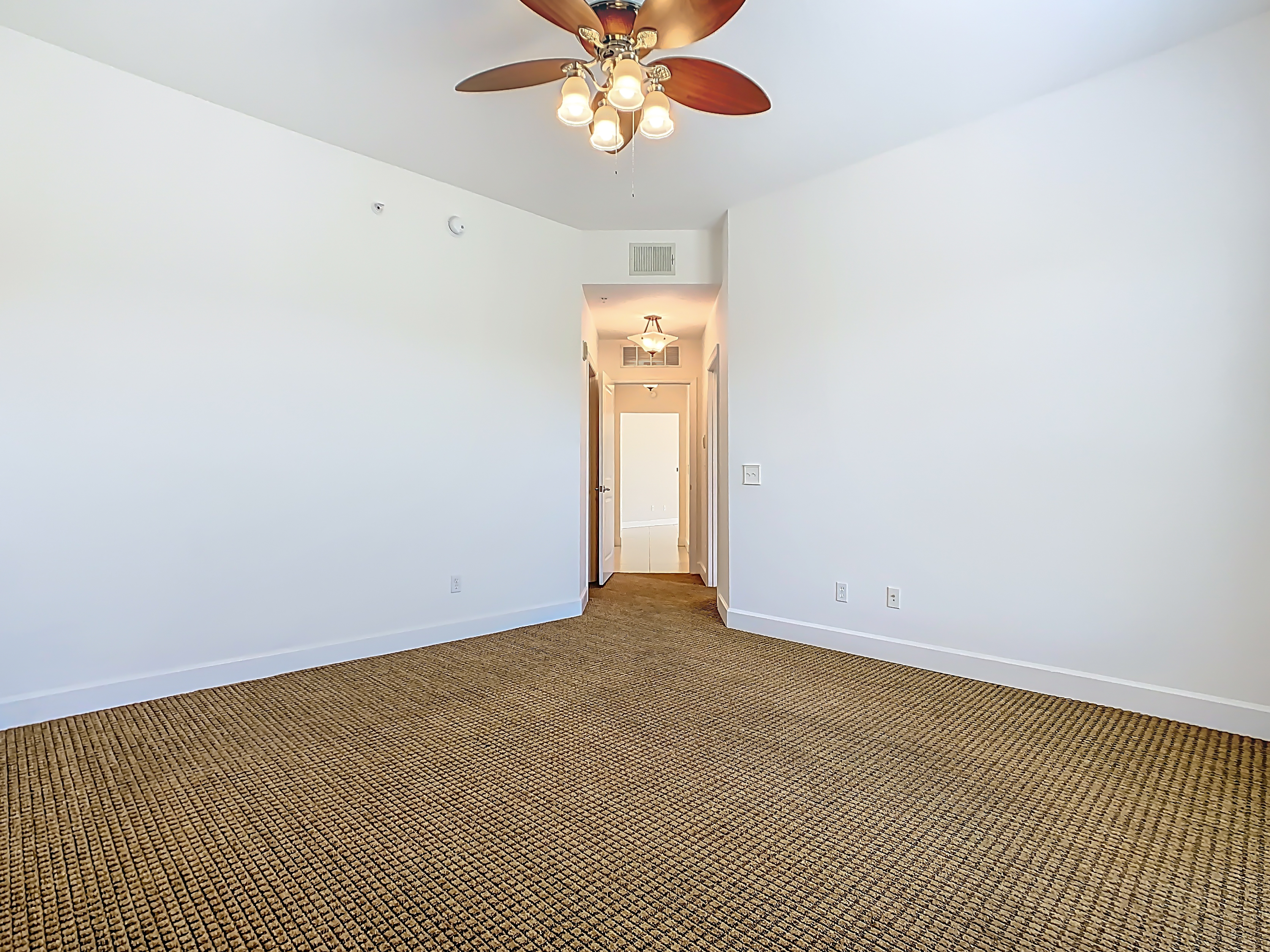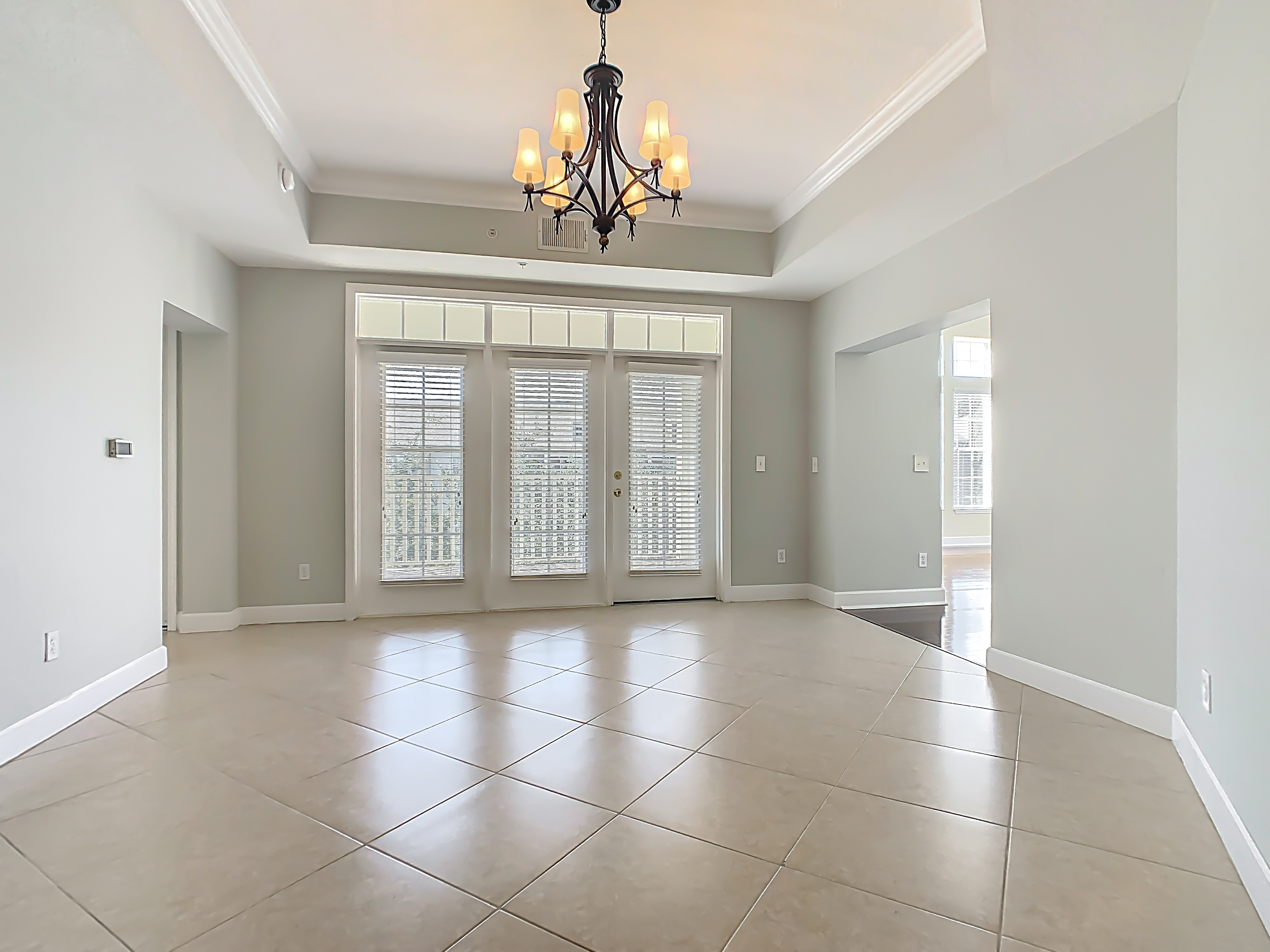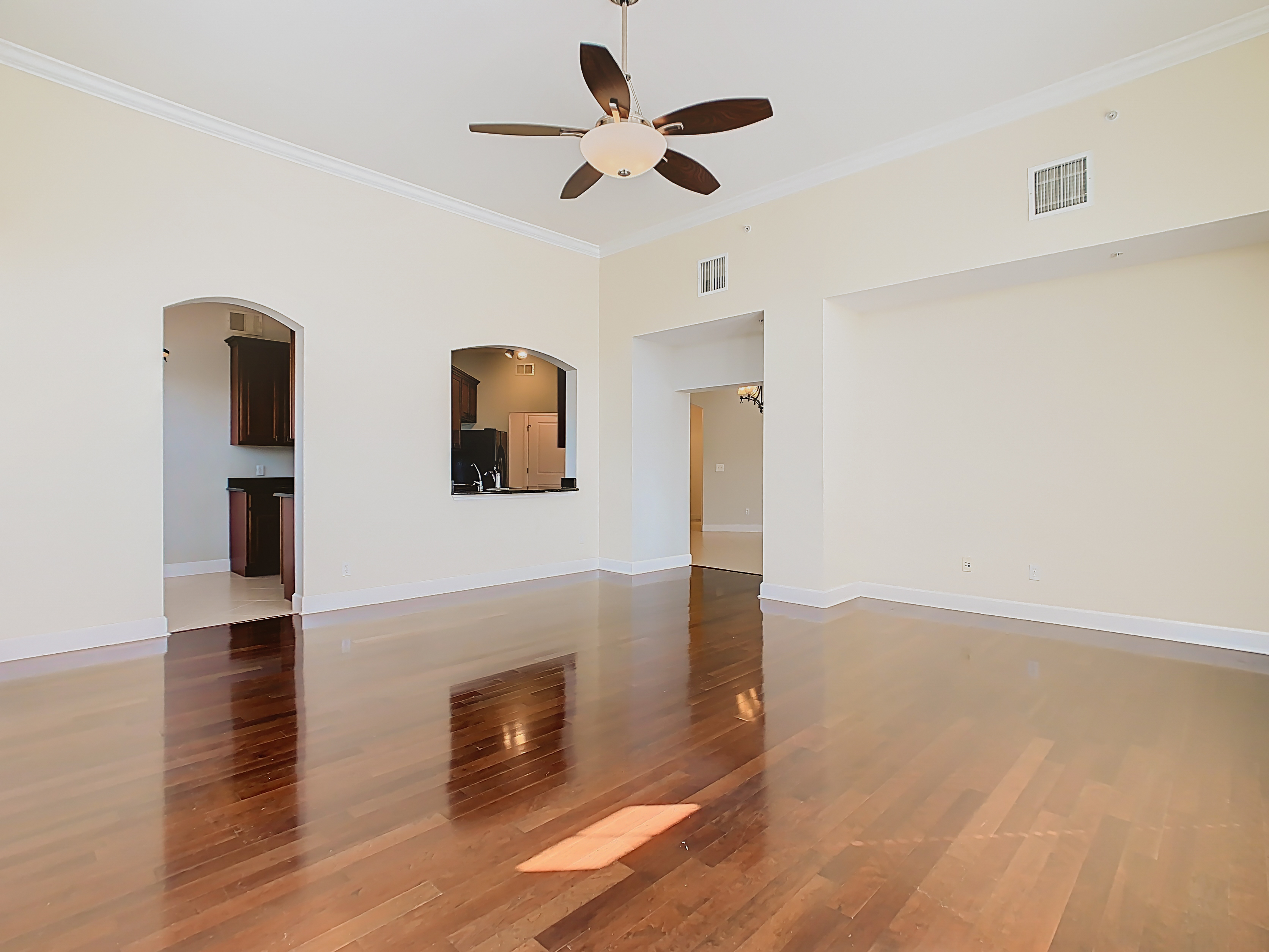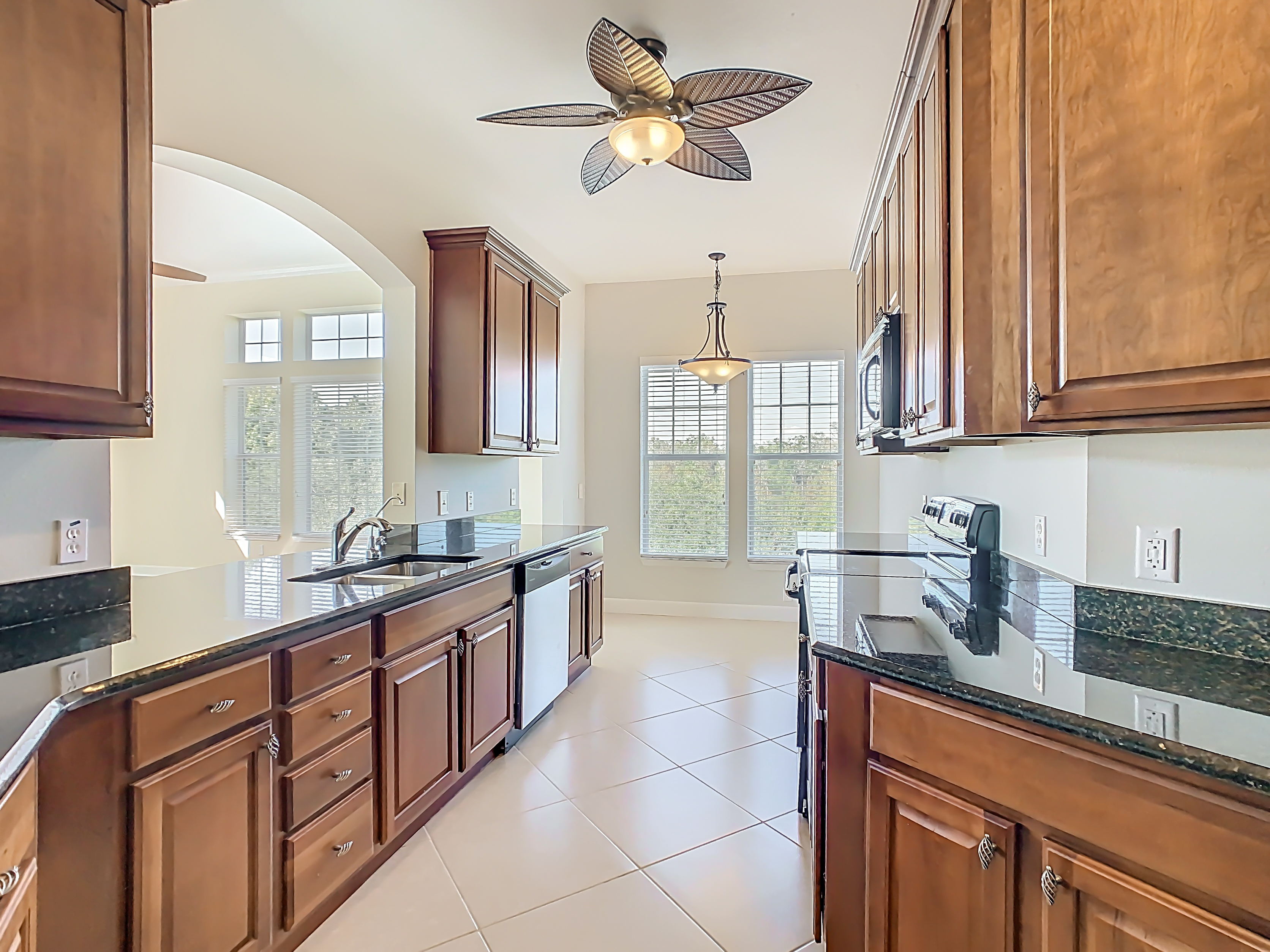 Available NOW in Celebration, Florida! City views from the balcony, treetop views from the living room, volume ceilings, plentiful windows and a corner unit location are included in this 4th Floor residence. The foyer opens into a generous sized formal dining space; complete with a wall of windows opening to the covered balcony. In true split floor plan style, two bedrooms share a jack-and-jill bath on the opposite side of the dining room. The galley kitchen includes an eat-in space and pass through with snack bar into the living room, along with a closet pantry. A half bathroom for guests is tucked away near the kitchen. In this same hallway is a laundry room with utility sink. Situated away from the main living areas is the primary bedroom. A generous walk-in closet along with en-suite bathroom make up the owner's retreat. There's also a den/office located behind French doors right off the foyer, too. Amenities abound, including a pool and fitness center. Nearby are coffee shops, restaurants, grocery stores, movie theatres, a post office, parks and walking trails. In addition, this unit is assigned single car garage bay G-10 and storage closet 11-B. Property sold "As-is". Buyer and/or buyer's agent responsible for verifying all pertinent information deemed relevant by the prospective buyer, including but not limited to square footage, acreage, utilities, taxes, zoning, permitting, condition, school zones, HOAs, etc.