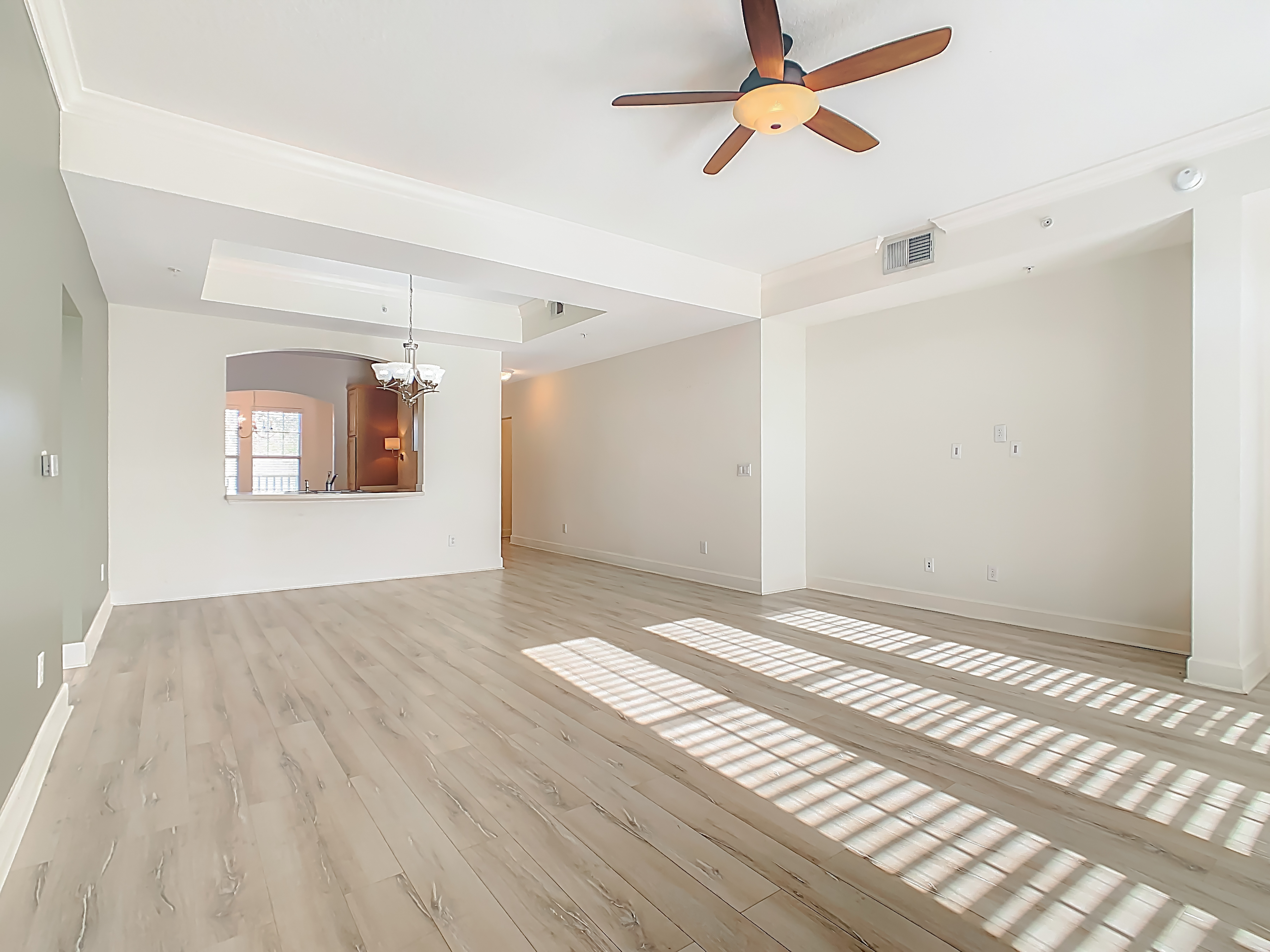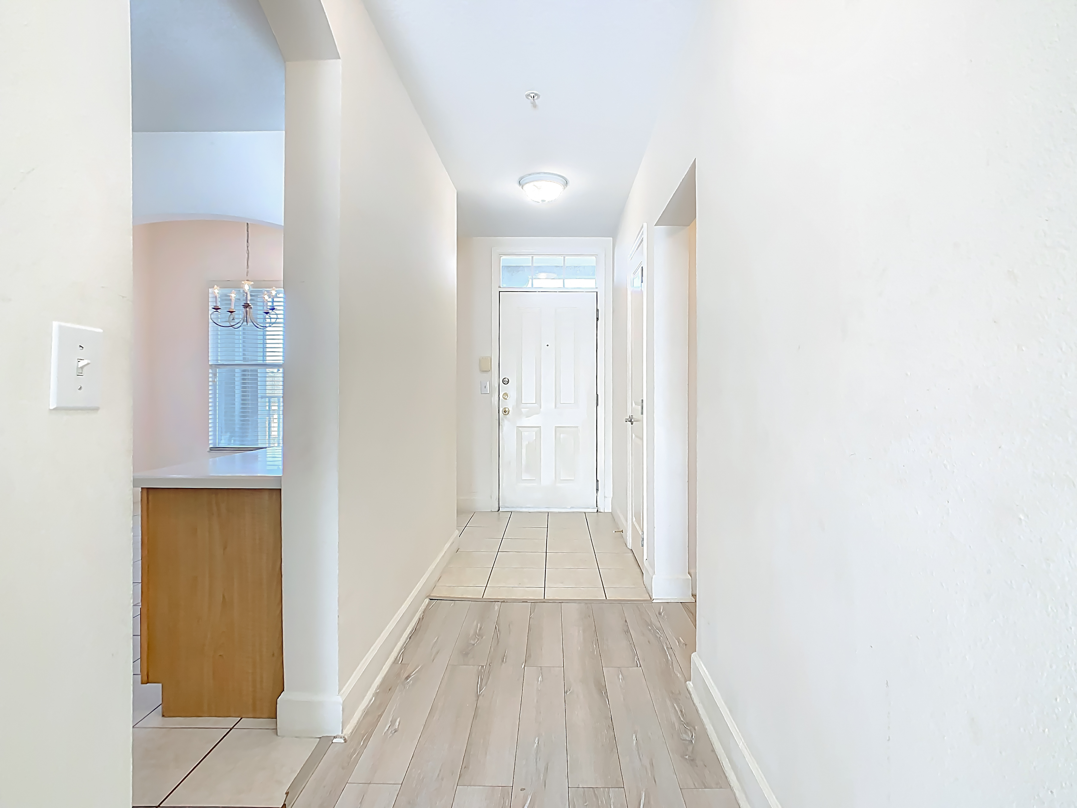 Available NOW in Celebration, Florida! A condominium residence offering an easy lifestyle with amenities close at hand. There's a pool, fitness center, and neighborhoods flanked by green space and ponds. Nearby are coffee shops, restaurants, grocery stores, movie theatres, a post office, parks, and walking trails. Unit #408 is assigned a 1-car garage bay, G-41. A 4th-floor residence, the foyer opens into an entry hall and to the dining room. The footprint then flows seamlessly into the kitchen, which features ample cabinetry, solid-surface countertops, and a built-in desk area. In addition, there is a generous pass-through into the living room, allowing for conversation while entertaining guests. French doors line the far wall of the living room, offering exterior views, natural light, and access to the covered balcony. The primary bedroom features a generous walk-in closet and an en suite bath with dual vanities and a separate tub and shower. Additionally, this unique floor plan allows each bedroom its own privacy. Bedroom 2 is located in a separate hall enclave that houses the laundry room and 1/2 bathroom. Bedroom 3, the hall enclave, has a full bathroom with a tub/shower combination and a walk-in closet. Property is sold As-Is. Buyer and/or buyer's agent responsible for verifying all pertinent information deemed relevant by the prospective buyer, including but not limited to square footage, acreage, utilities, taxes, zoning, permitting, condition, school zones, HOAs, etc.