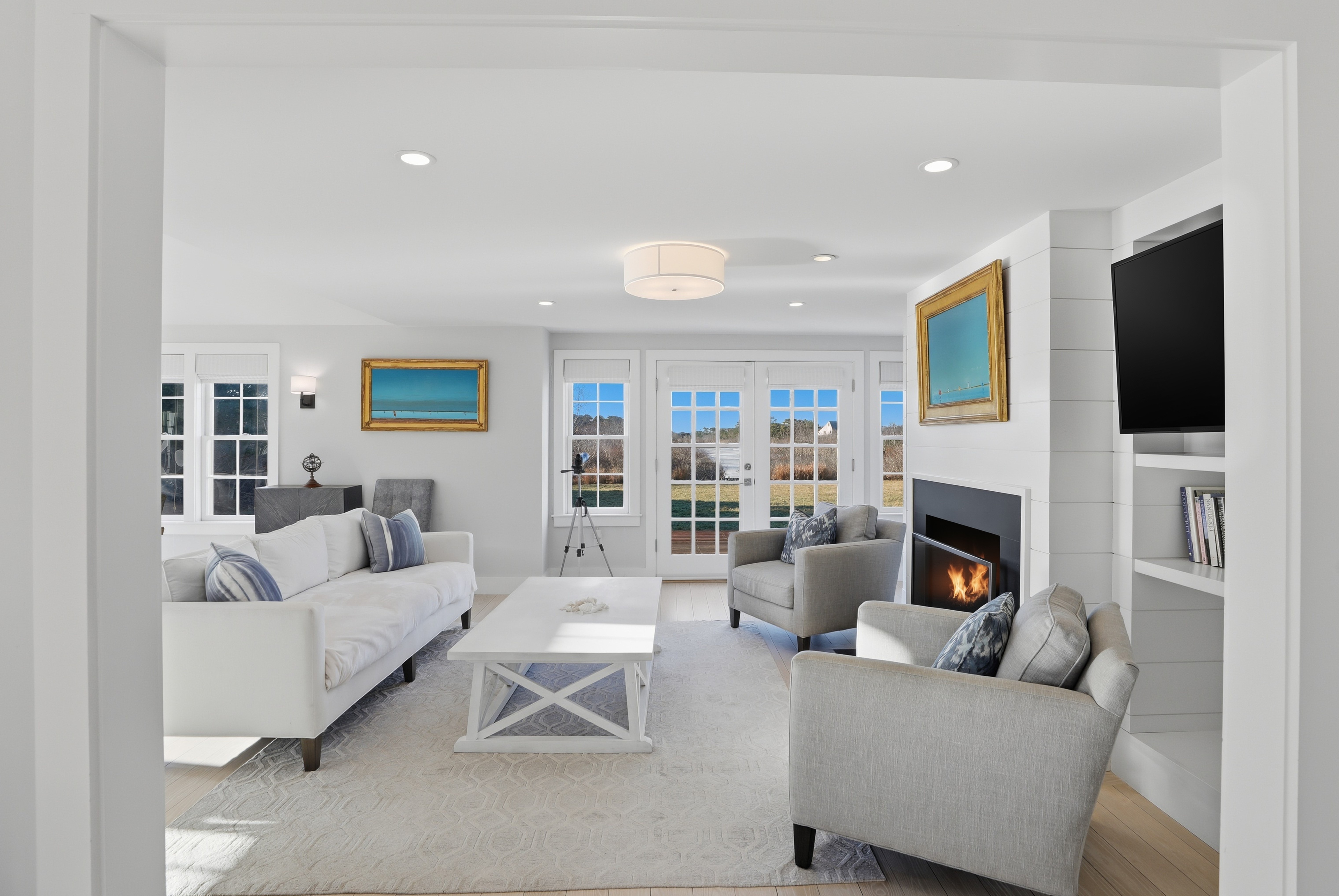 Welcome to Goose Cove, a beautifully renovated 4-bedroom, 4.5-bathroom home offering stunning views of Goose Cove and close proximity to coveted beaches, bike path, and Millies. This home features interior design by Elisa Allen and high-end finishes by Clarke Brothers Construction. Thoughtful details abound, from the custom landscaping and inviting front porch to the French doors opening onto outdoor living spaces. An open-concept living room features a fireplace and custom shiplap bookcases, while the gourmet kitchen is equipped with custom cabinets, quartzite countertops, and a dining area with vaulted ceilings. The first-floor primary suite offers a walk-in closet and la uxurious bath. Additional highlights include three en-suite bedrooms, a finished lower level with 10' ceilings, a wrap-around mahogany deck, an outdoor shower, and access to a shared dock. Potential for a garage and an in-ground pool. Property sold "As-is". Buyer and/or buyer's agent responsible for verifying all pertinent information deemed relevant by the prospective buyer, including but not limited to square footage, acreage, utilities, taxes, zoning, permitting, condition, school zones, HOAs, etc.