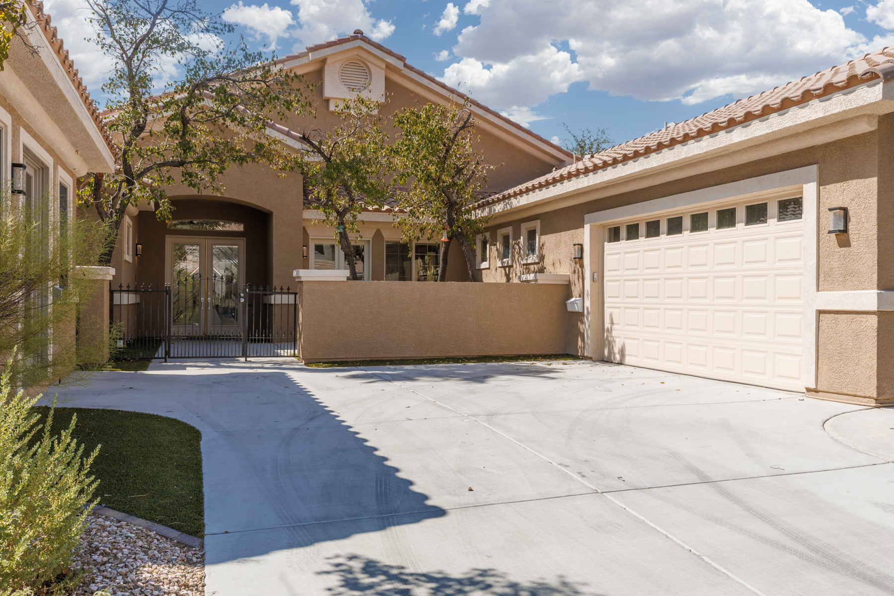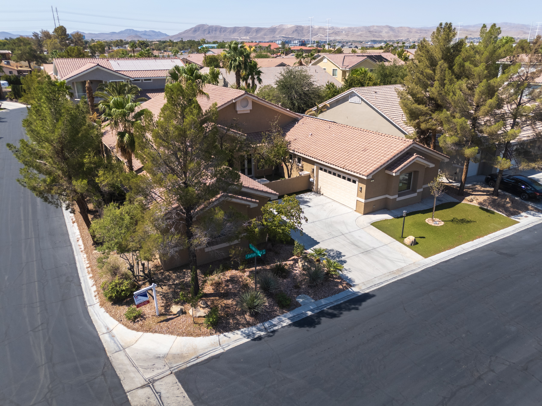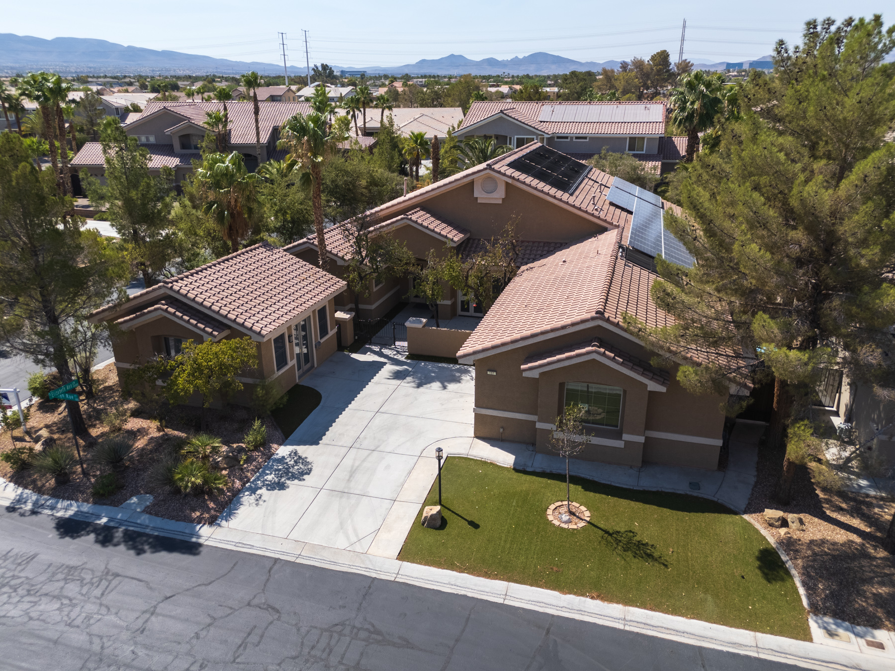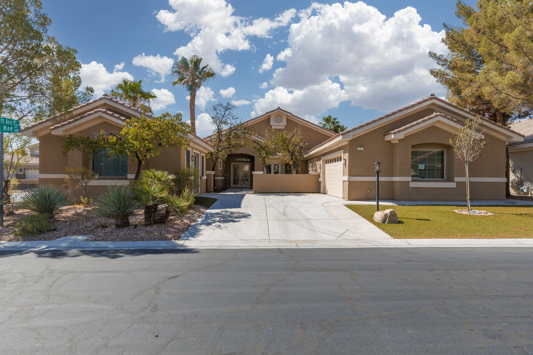 Fantastic floor plan for any lifestyle! All rooms are large & open, high ceilings & plenty of windows. There is also a 440 square foot casita with a kitchen & a full bathroom! The two way fireplace in the living room is also accessible on the backyard patio creating a warm & charming space. The huge kitchen is a gourmet's dream come true with plenty of counter space & cabinets! The primary bedroom is separate from the others and is enormous! There is dual walk in closets, dual & separate sinks, separate garden tub & shower. Lots of storage in the garage & a separate solar water heating system to supplement the gas water heater. The refreshing pool/spa combo & backyard are perfect for relaxing, & add an enjoyable space for entertaining! Near freeway access, local casinos, Allegiant Stadium, the Raiders Practice Facility, the international & private airports, great schools, shops & restaurants.