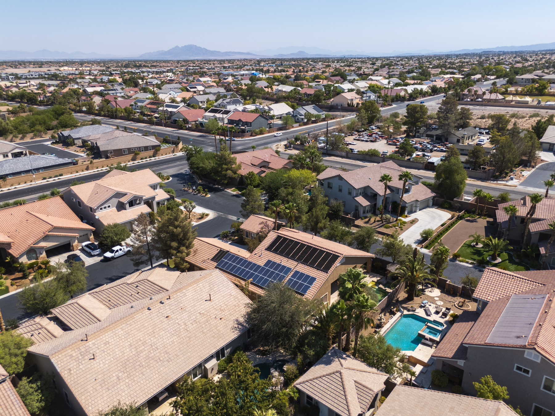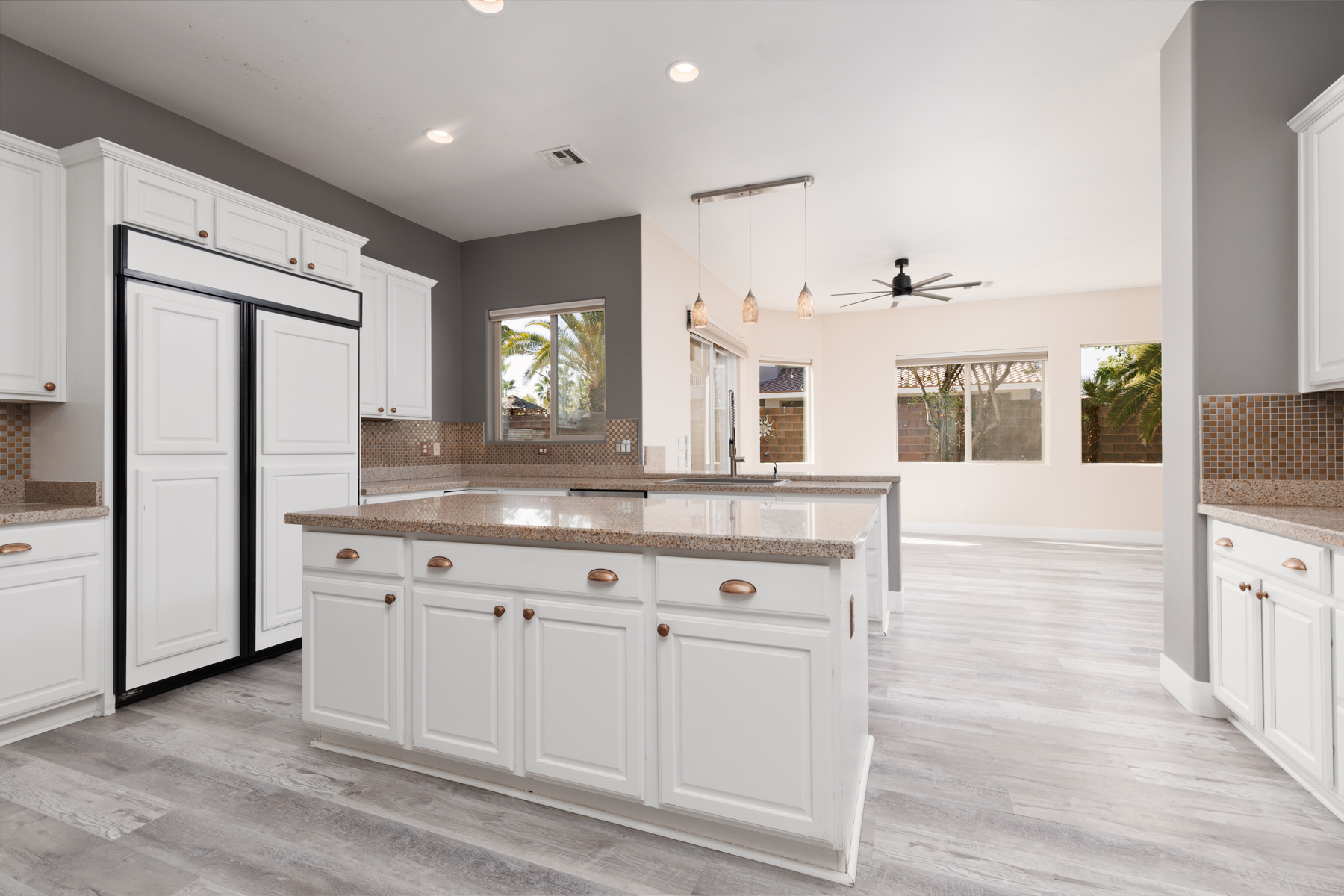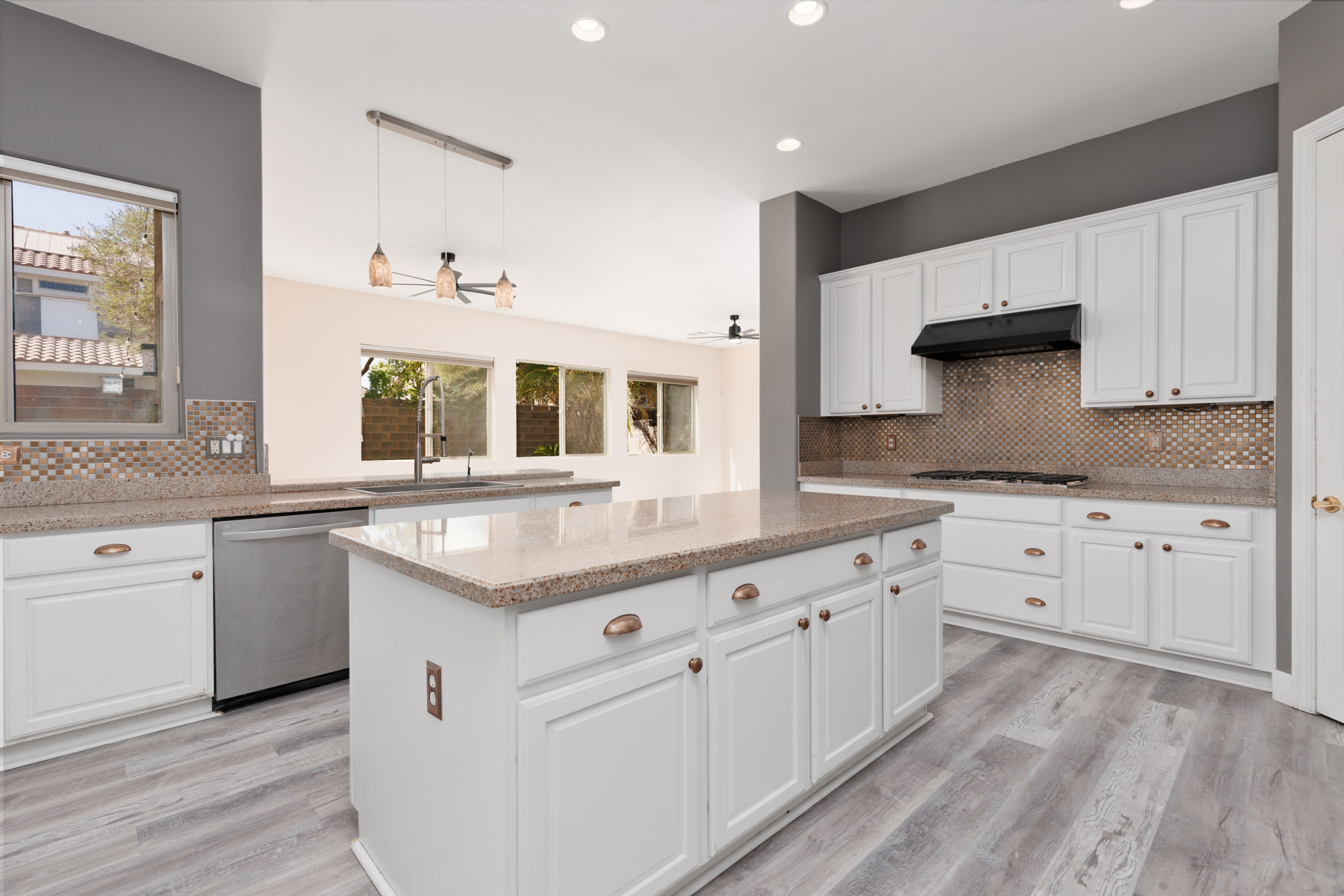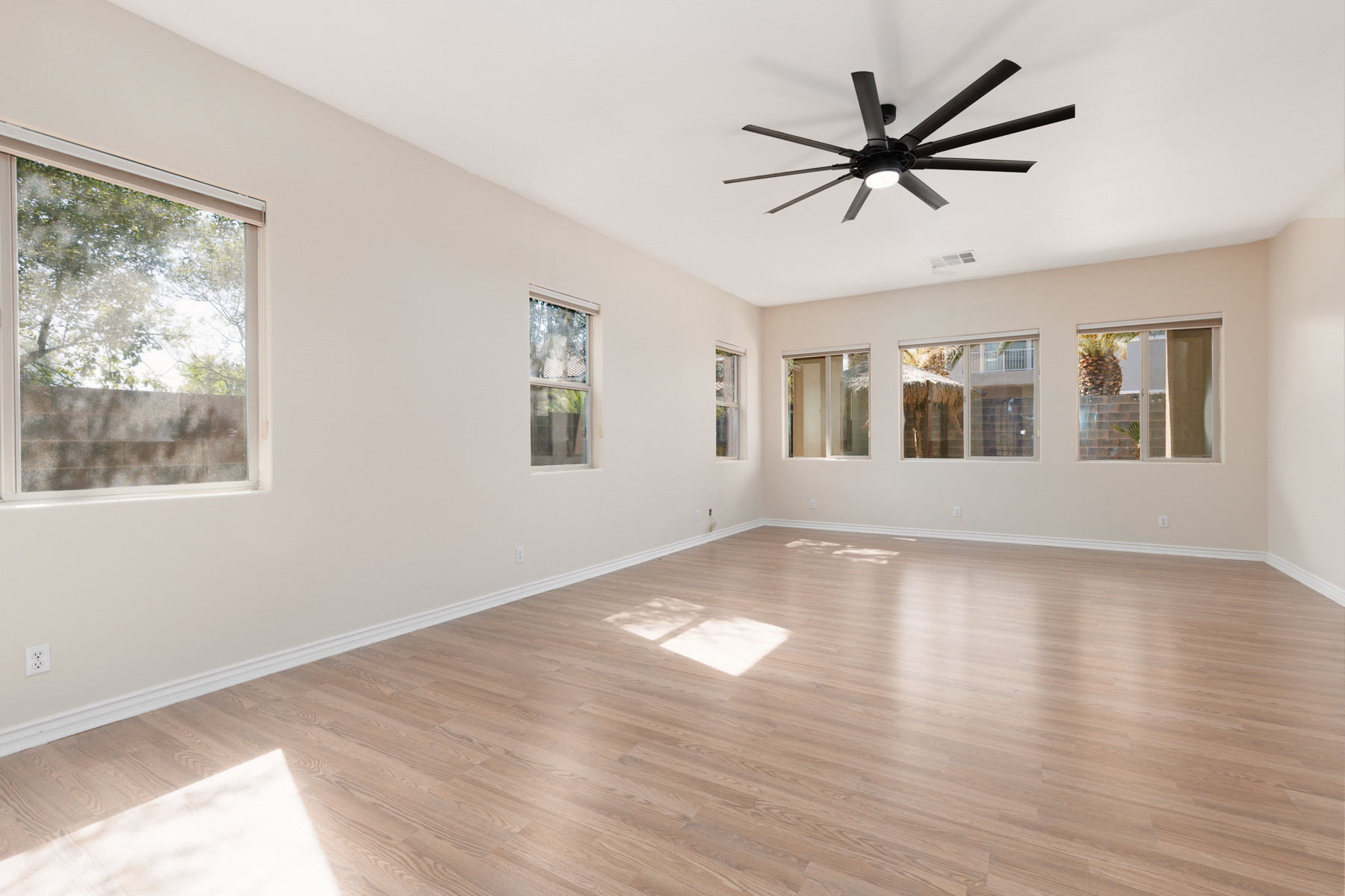 Fantastic floor plan for any lifestyle! All rooms are large & open, high ceilings & plenty of windows. There is also a 440 square foot casita with a kitchen & a full bathroom! The two way fireplace in the living room is also accessible on the backyard patio creating a warm & charming space. The huge kitchen is a gourmet's dream come true with plenty of counter space & cabinets! The primary bedroom is separate from the others and is enormous! There is dual walk in closets, dual & separate sinks, separate garden tub & shower. Lots of storage in the garage & a separate solar water heating system to supplement the gas water heater. The refreshing pool/spa combo & backyard are perfect for relaxing, & add an enjoyable space for entertaining! Near freeway access, local casinos, Allegiant Stadium, the Raiders Practice Facility, the international & private airports, great schools, shops & restaurants.