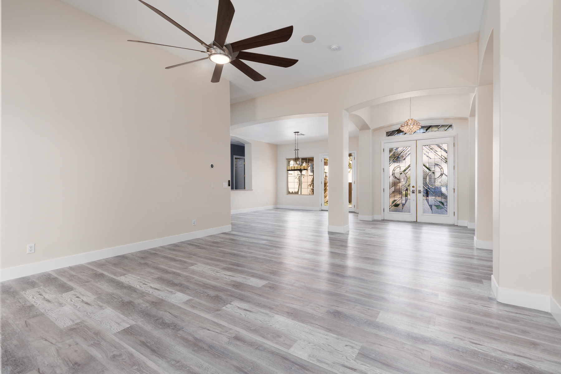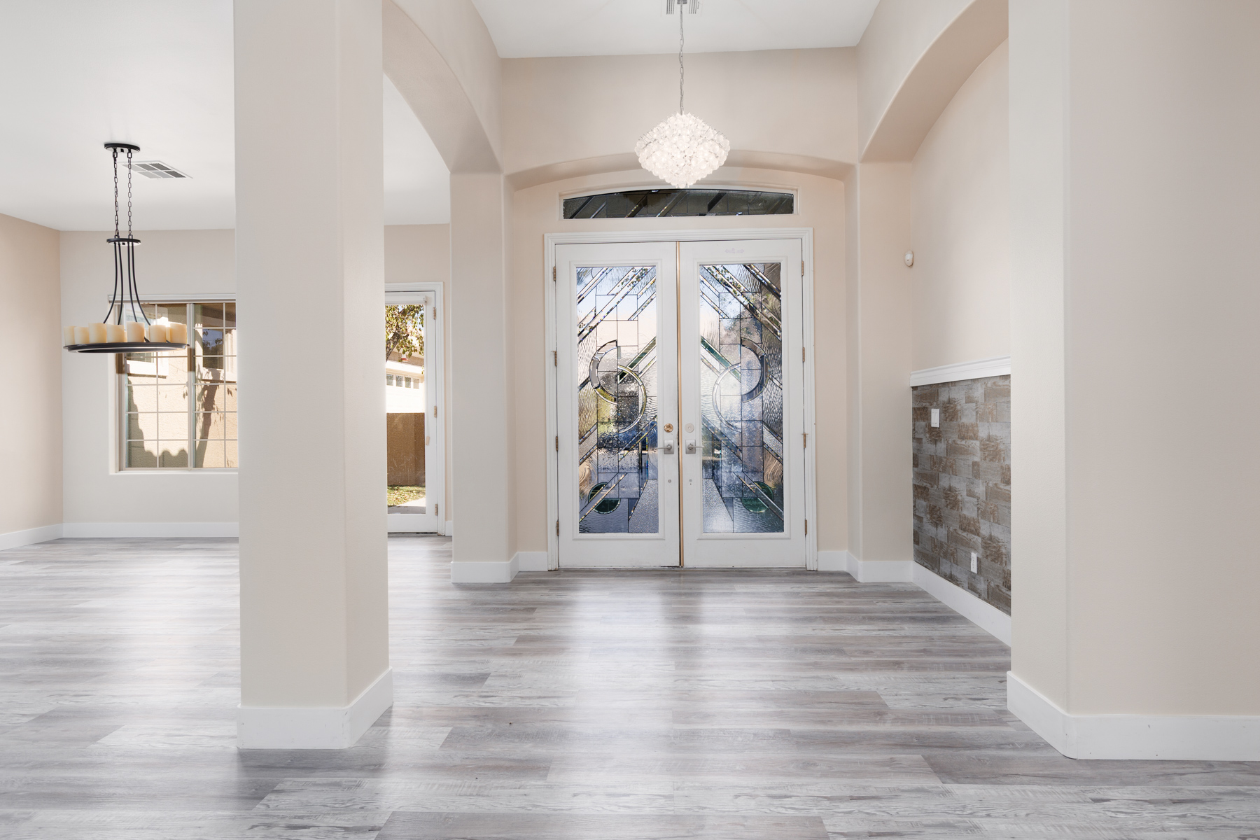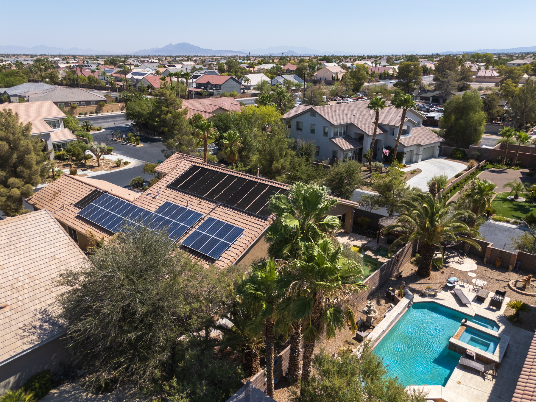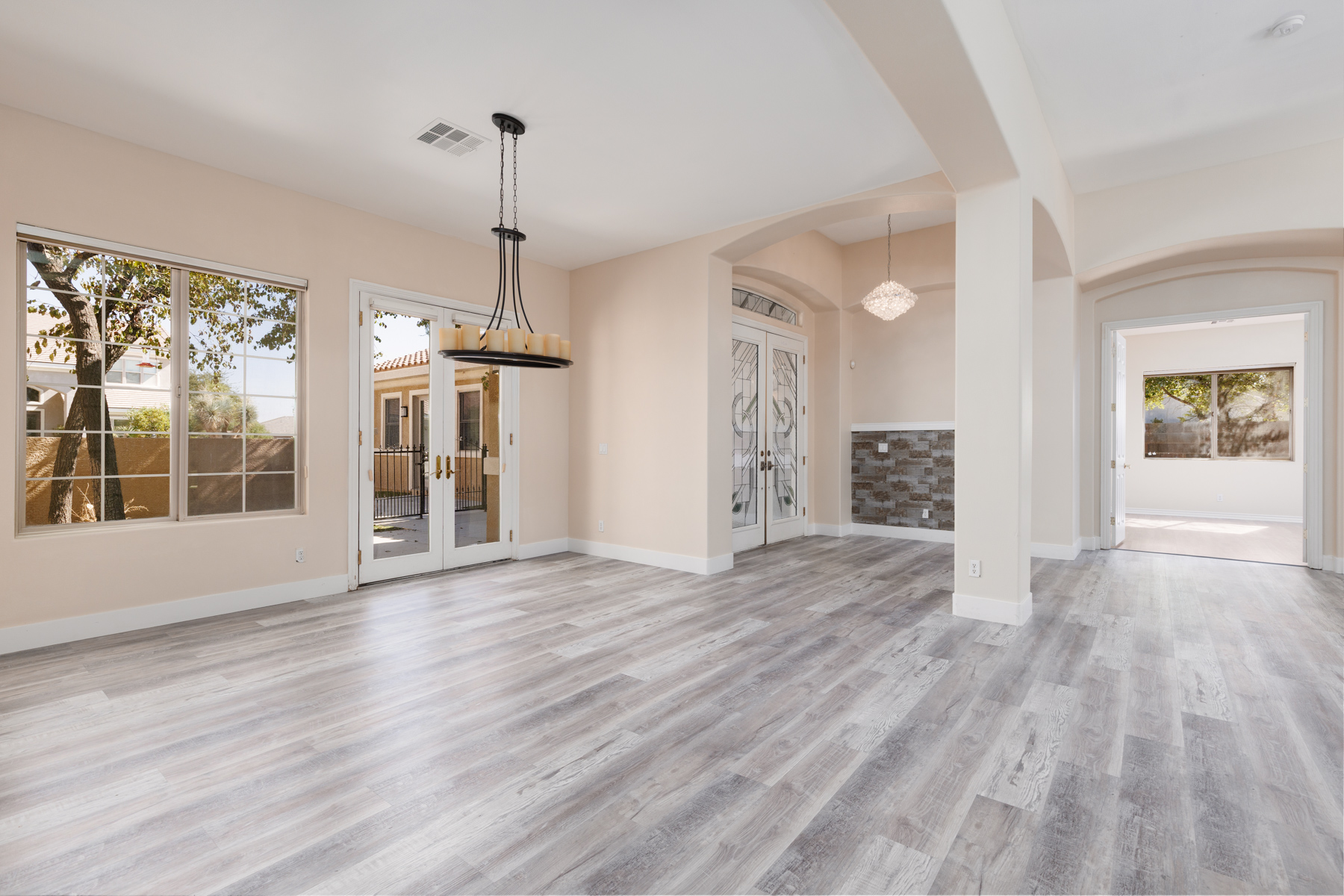 Fantastic floor plan for any lifestyle! All rooms are large & open, high ceilings & plenty of windows. There is also a 440 square foot casita with a kitchen & a full bathroom! The two way fireplace in the living room is also accessible on the backyard patio creating a warm & charming space. The huge kitchen is a gourmet's dream come true with plenty of counter space & cabinets! The primary bedroom is separate from the others and is enormous! There is dual walk in closets, dual & separate sinks, separate garden tub & shower. Lots of storage in the garage & a separate solar water heating system to supplement the gas water heater. The refreshing pool/spa combo & backyard are perfect for relaxing, & add an enjoyable space for entertaining! Near freeway access, local casinos, Allegiant Stadium, the Raiders Practice Facility, the international & private airports, great schools, shops & restaurants.